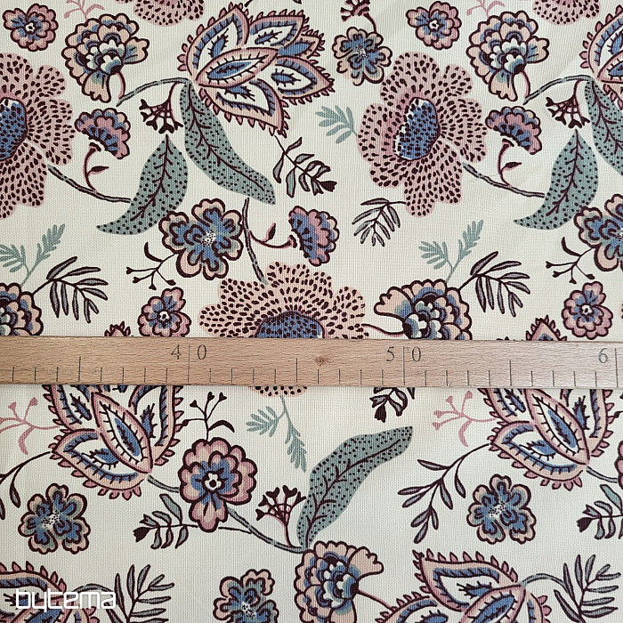 Látka s vyšším podielom bavlny a to 220g, v dizajne rozkvitnutých boho kvetov sa bude krásne vynímať na dekoračnom závese alebo obruse u vás doma.