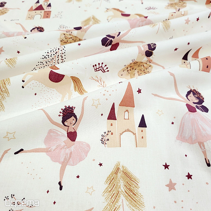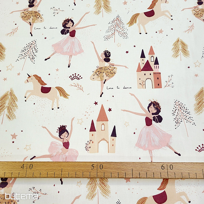Bavlnená látka pre dievčatká, ktoré milujú tancujúce princezné a jednorožce. Dokonalá kombinácia toho najmilšieho pre našich najmenších.