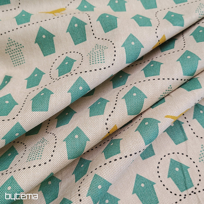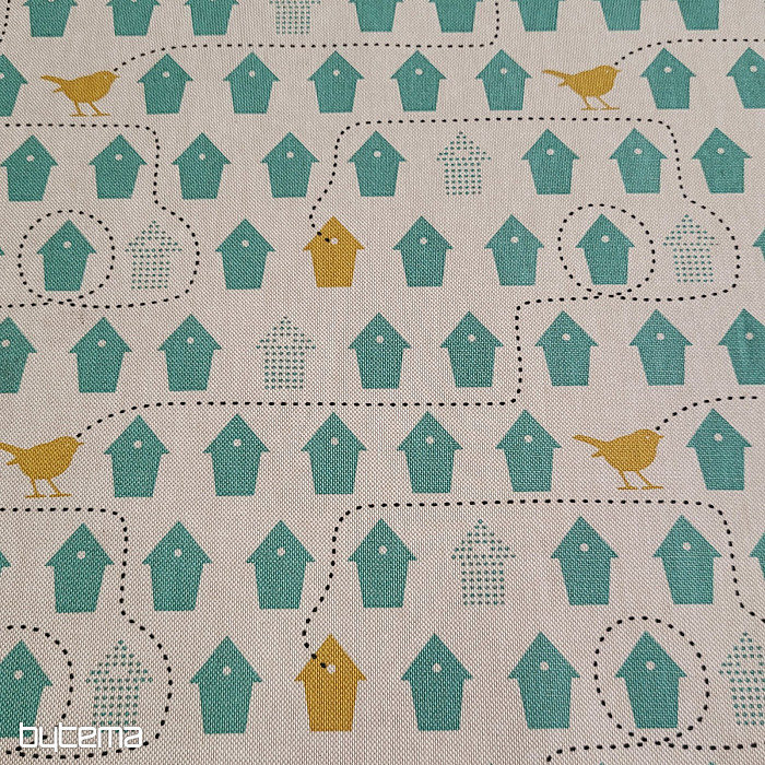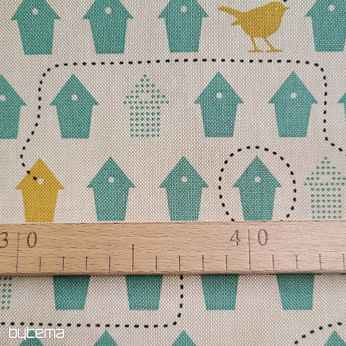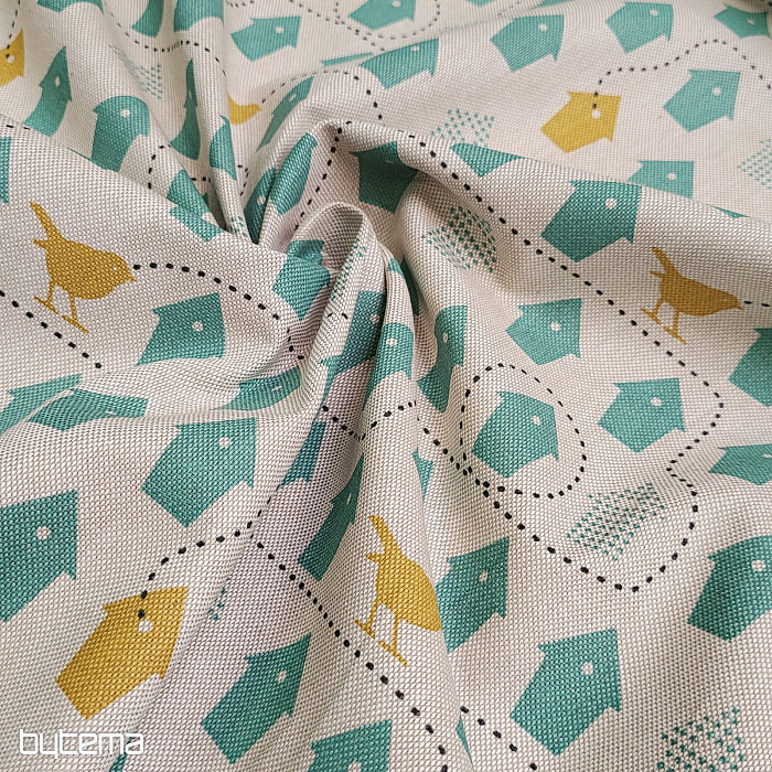 Bavlnená látka plná vtáčích búdok, len pre ktorú sa rozhodnúť.