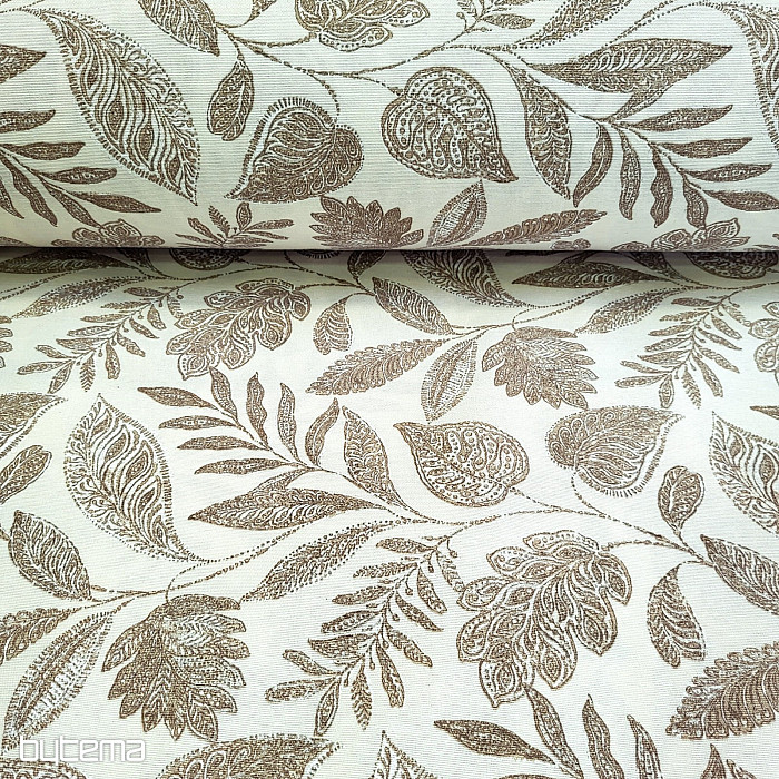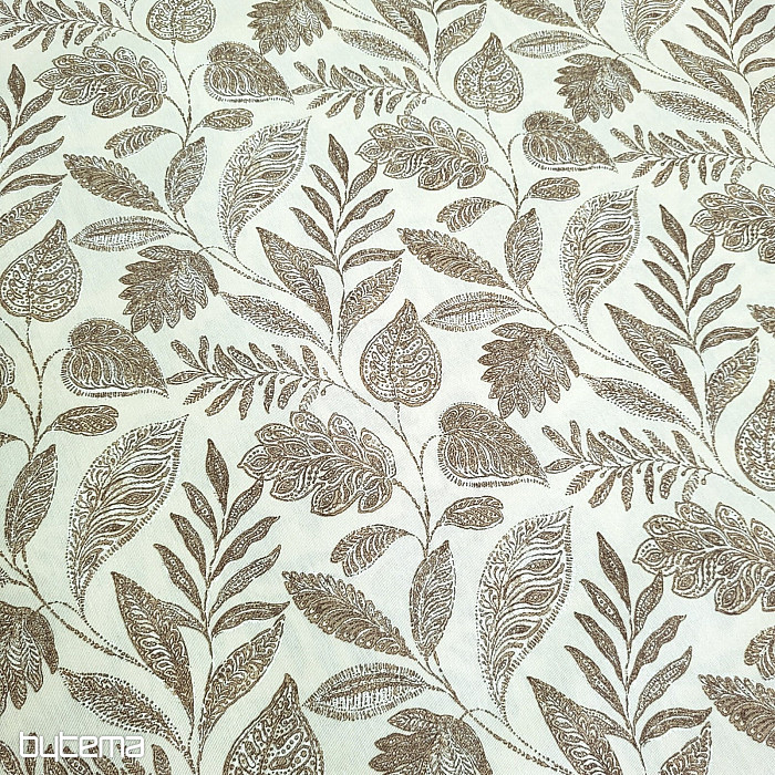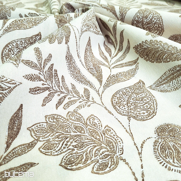 Dekoračná látka s veľkými listami rôzneho druhu.