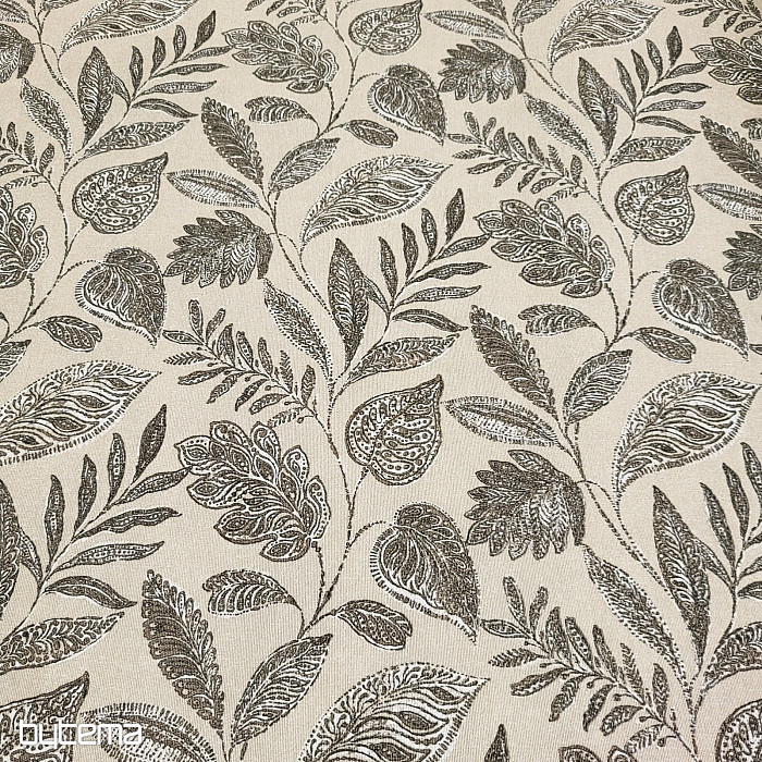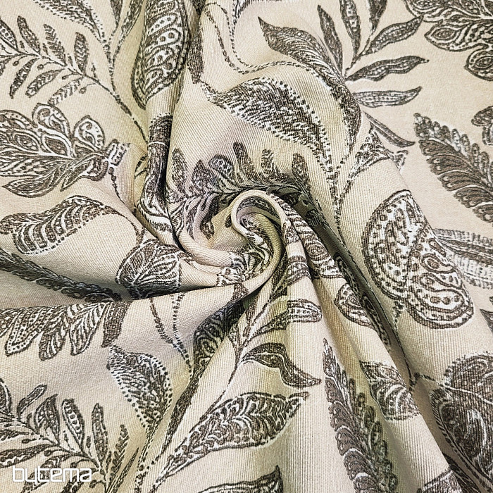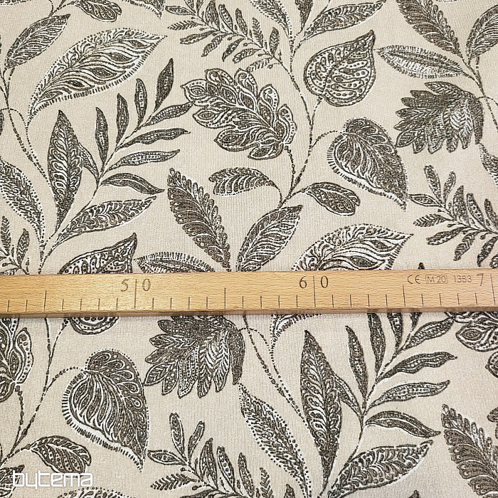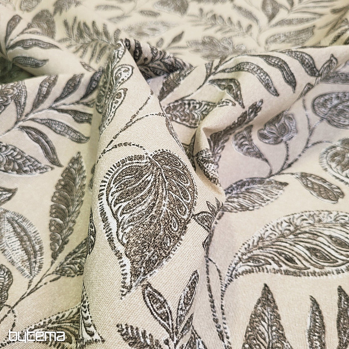 Dekoračná látka s veľkými listami rôzneho druhu.