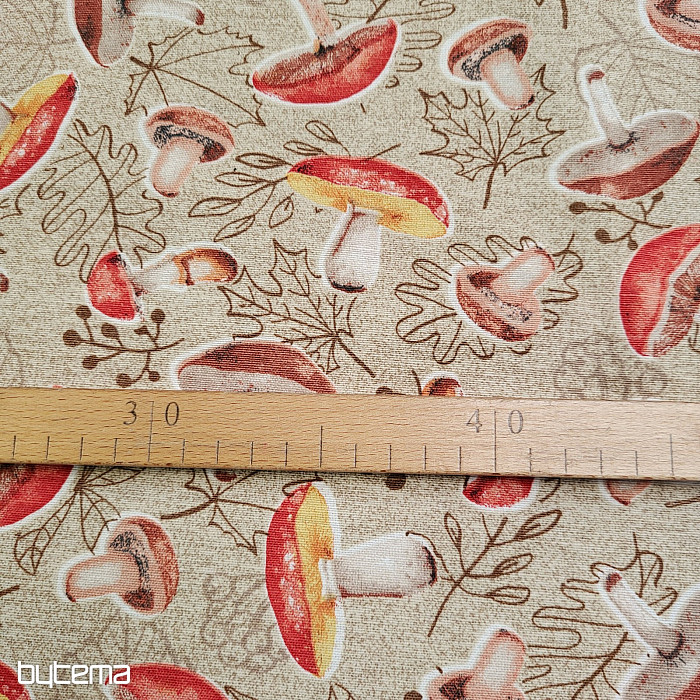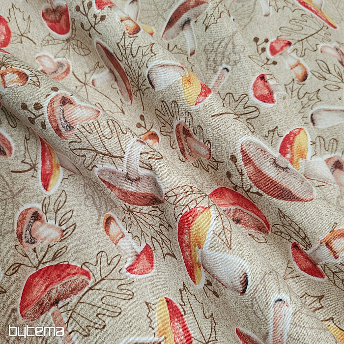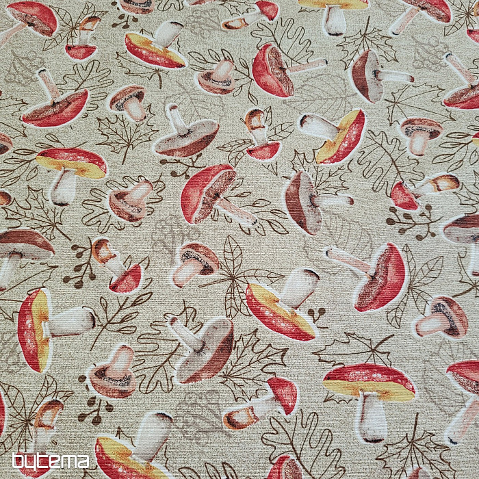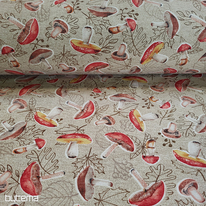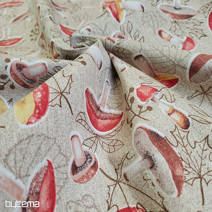 Jesenná dekoračná látka plná krásnych húb poteší oko každého chatára i chalupára.