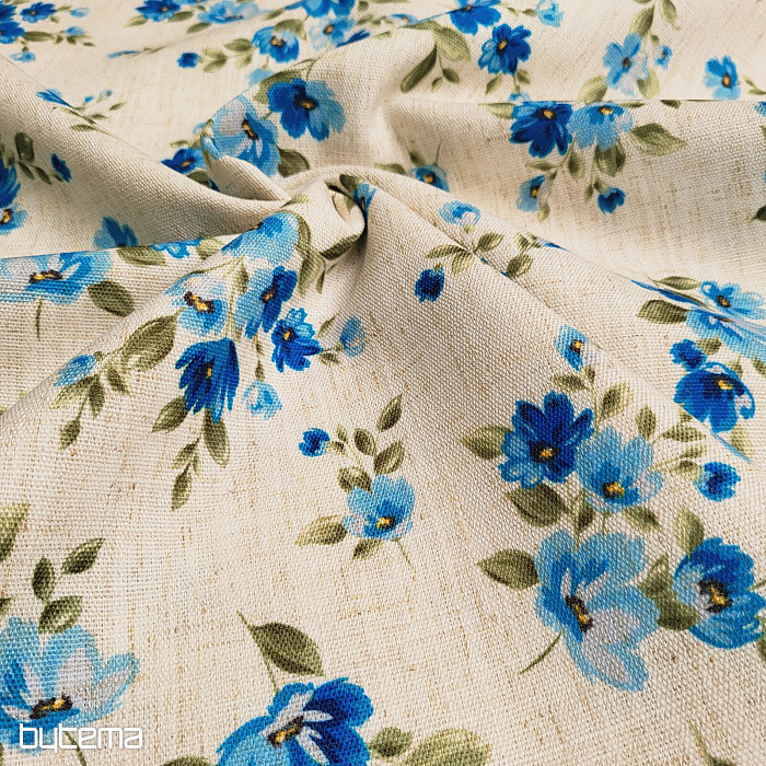 Dekoračná látka s jarnými kvetmi v nezábudkovo modrej farbe bude ozdobou vašej kuchyne aj pergoly.