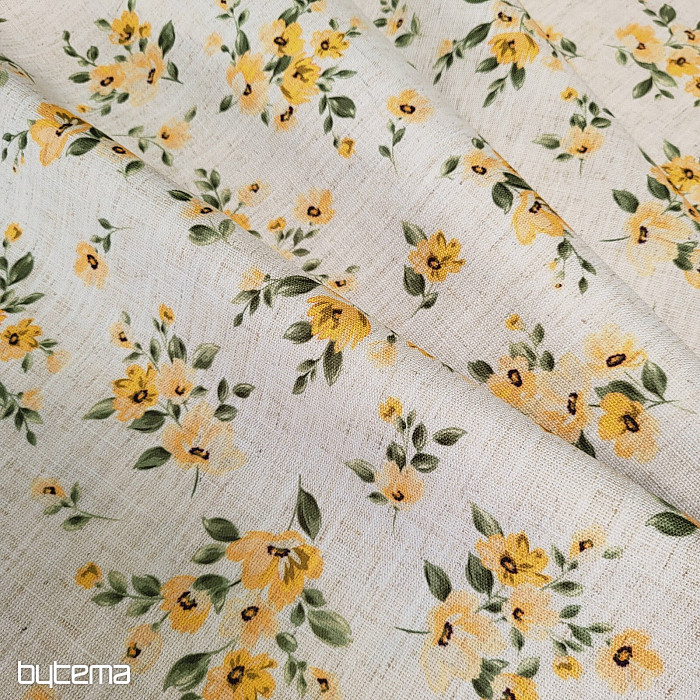 Dekoračná látka s jarnými kvetmi v sýto žltej farbe bude ozdobou vašej kuchyne aj pergoly.