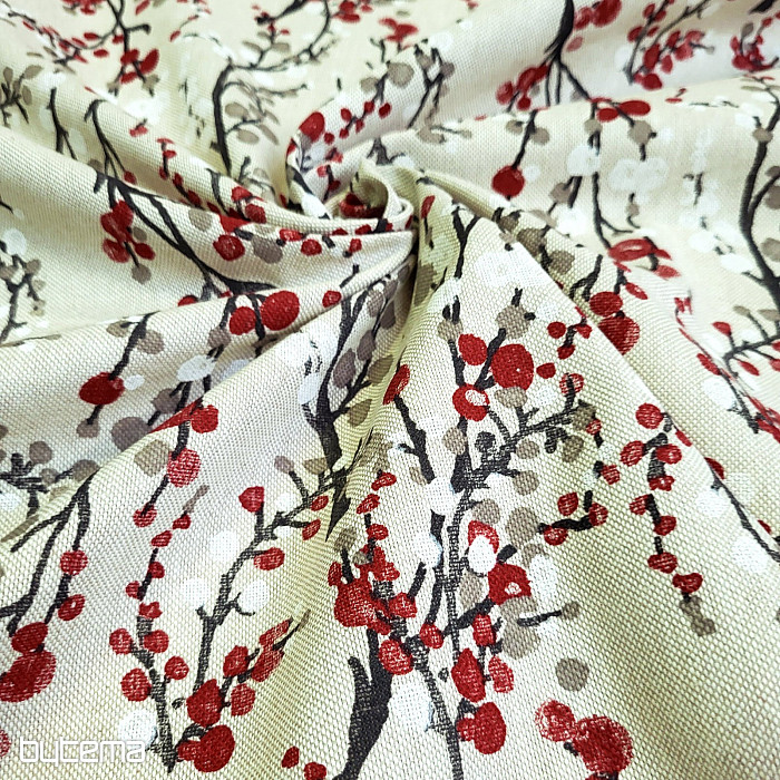 Dekoračná látka so vzorom vetvičiek.