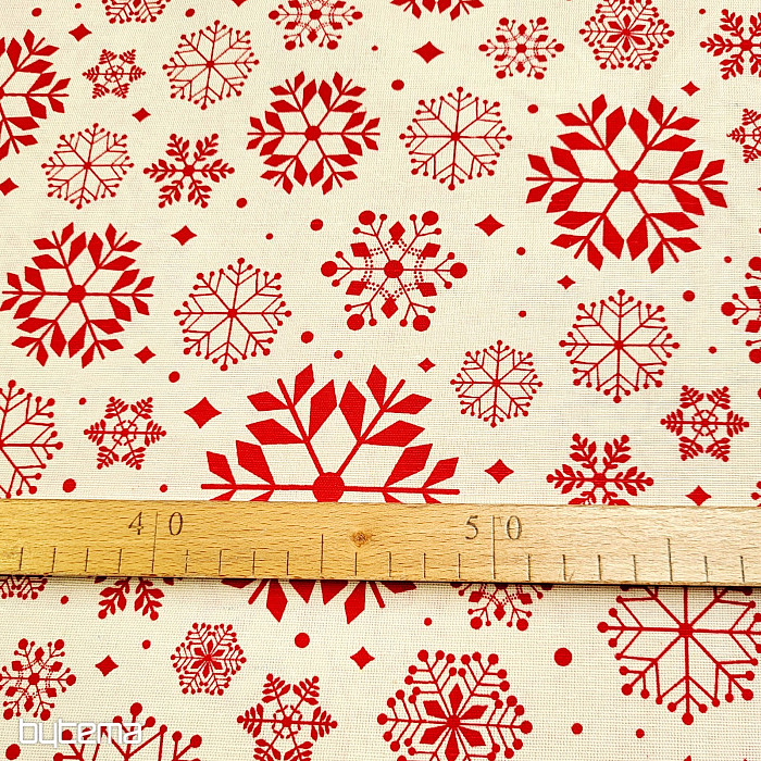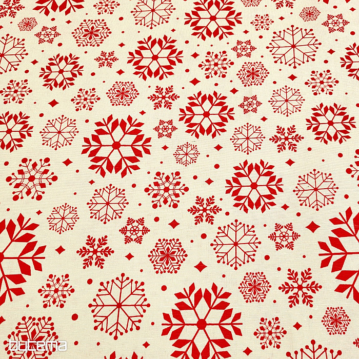 Vianočná dekoračná látka plná červených vločiek ozbobí vašu kuchyňu vo sviatočný čas.