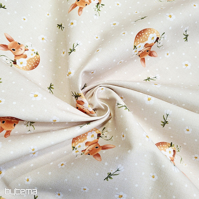 Veľkonočná dekoračná látka so zajačikom schovaným v škrupine od vajíčka. Krásna a milá dekorácia na jarné chvíle u vás doma.