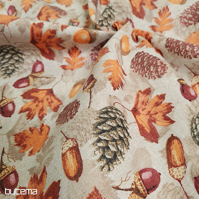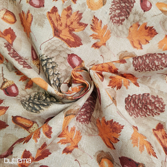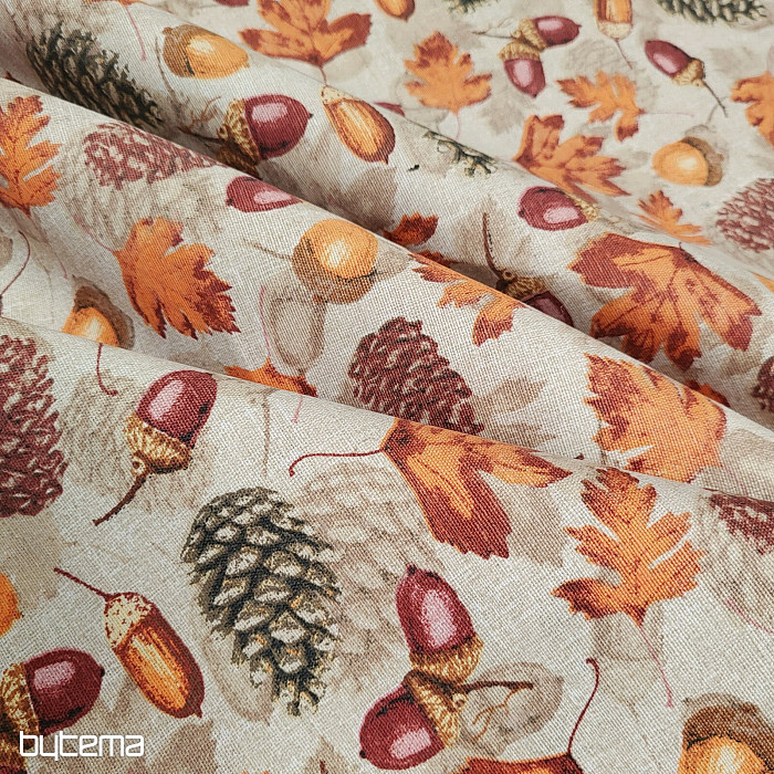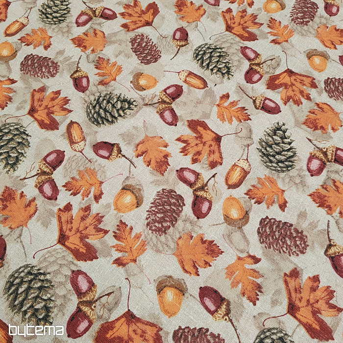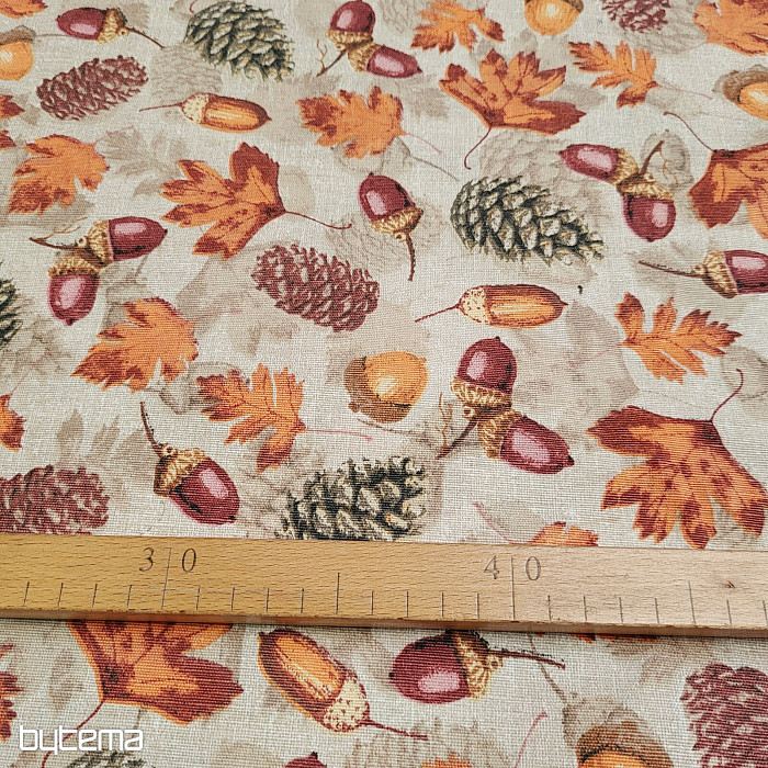 Jesenná dekoračná látka plná lesných plodov poteší oko každého chatára i chalupára.