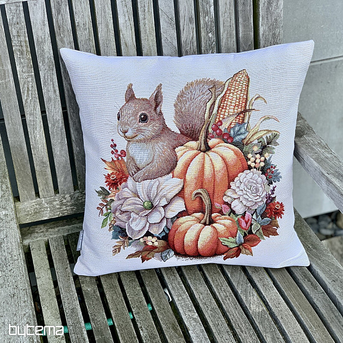 Gobelínový obliečka na vankúš s jesennou tématikou. Milá dekorácia pre váš domov.
