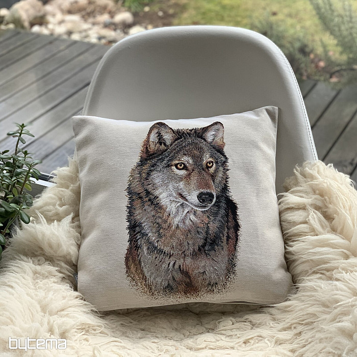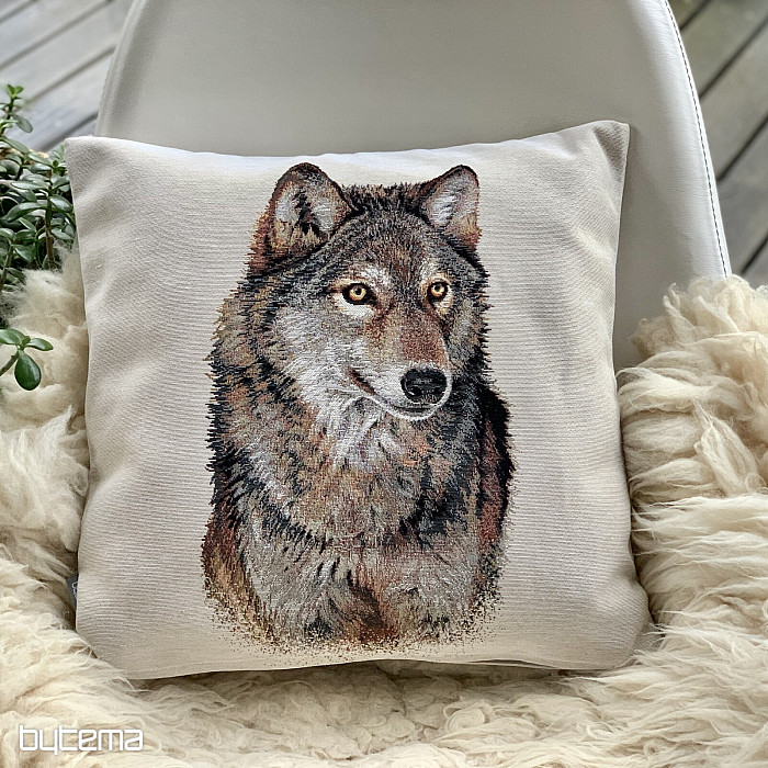 Gobelínový obliečka na vankúš s divokým vlkom. Jeho pohľad vás dostane!
