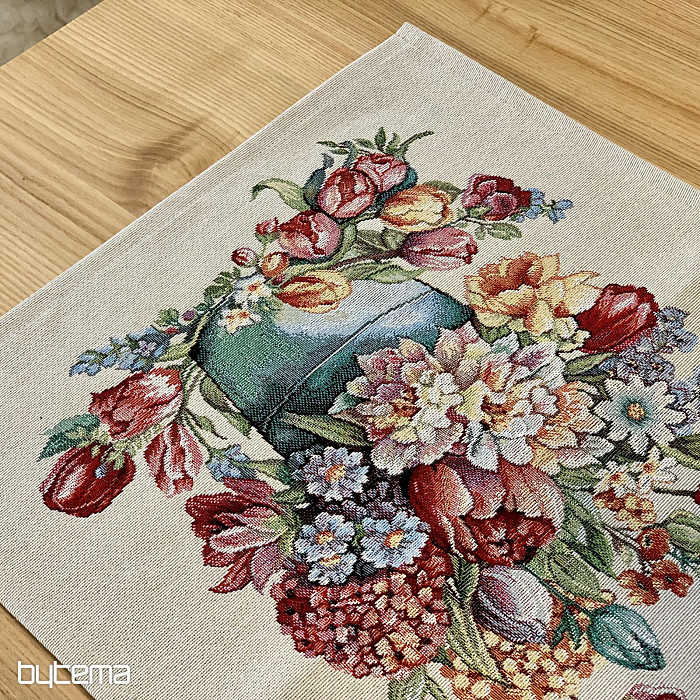 Gobelínový obrus a šál plný jarných farieb a kvetov bude ozdobou každého stola u vás doma. Môžete krásne skombinovať s obliečkou na vankúš v rovnakom dizajne. Váš dom bude plný jarných kvetov.