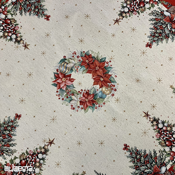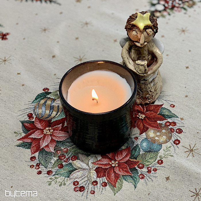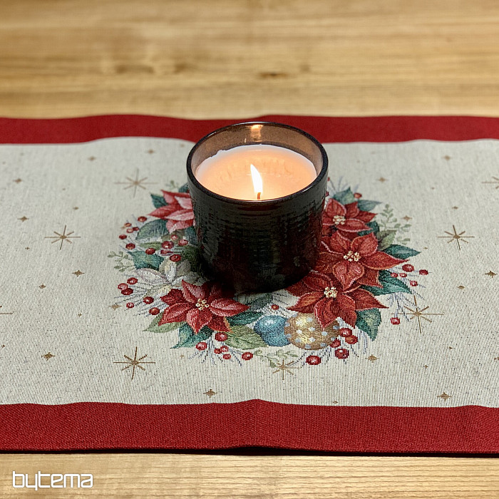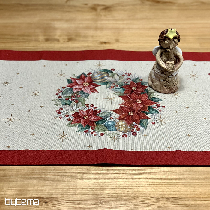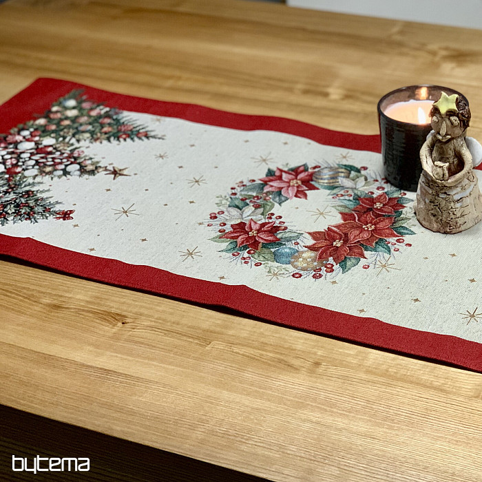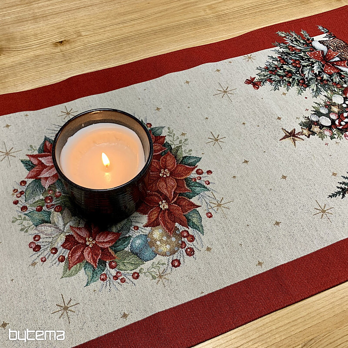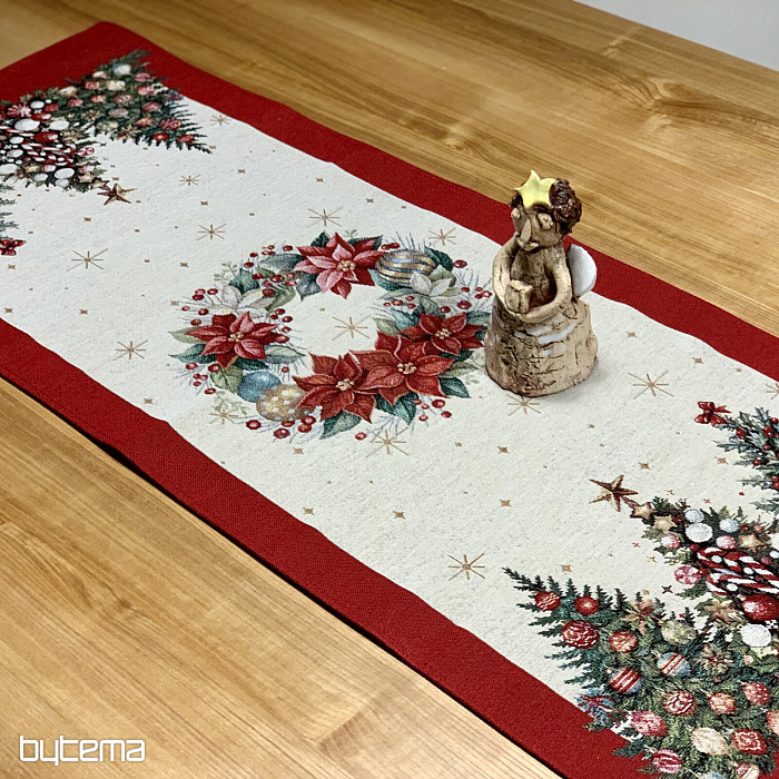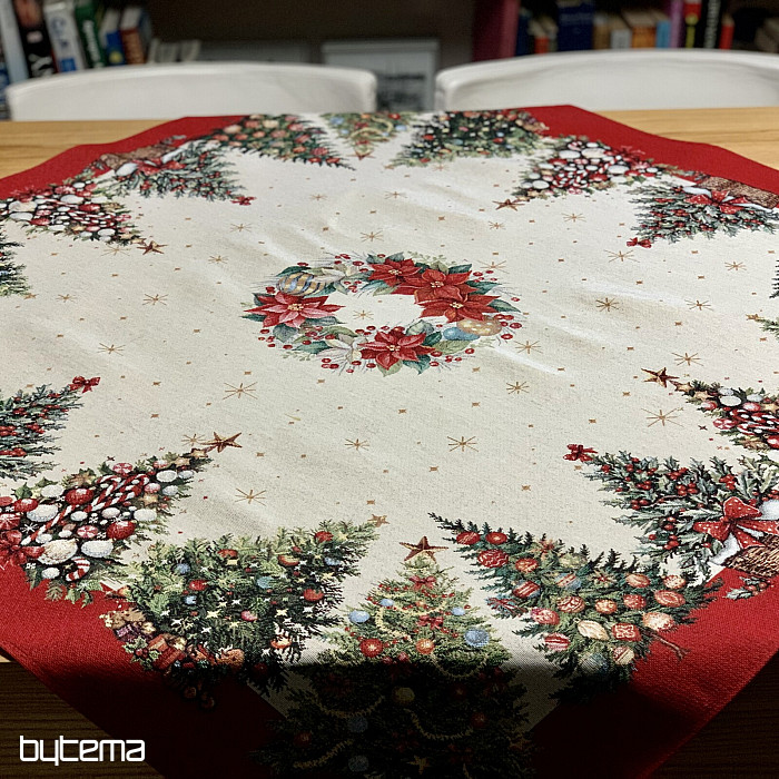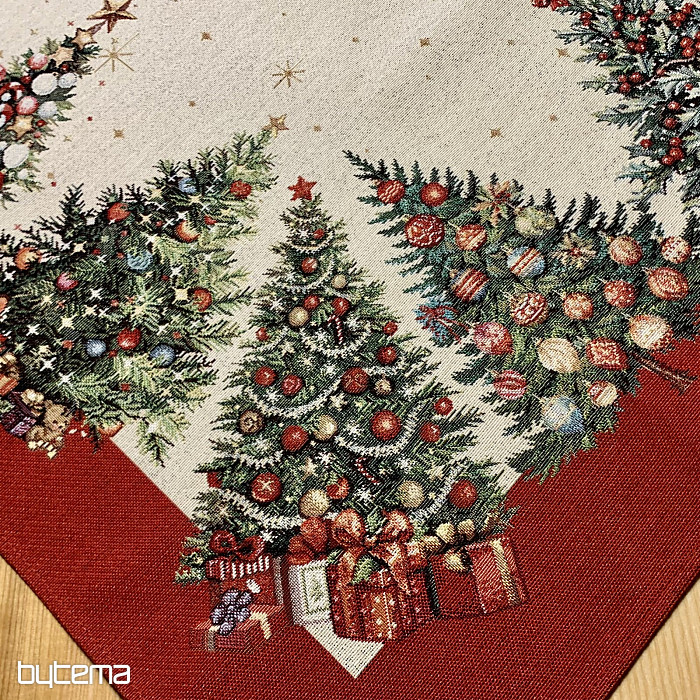 Gobelínový obrus a šál s motívom ozdobených vianočných stromčekov, vykúzli u vás doma rozprávkovú atmosféru Vianoc.