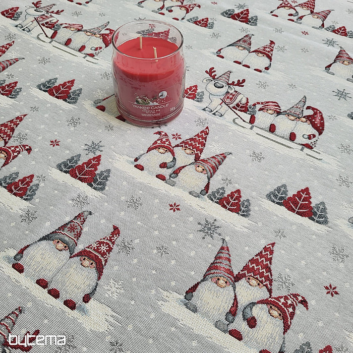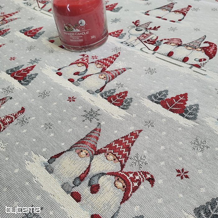 Gobelínový obrus s roztomilým motívom vianočných škriatkov bude ozdobou vášho vianočného stola.