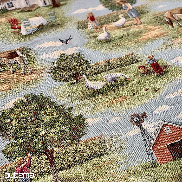 Veľmi kvalitná gobelínová látka s nádherným motívom vidieckeho žitia bude robiť radosť v každom dome.