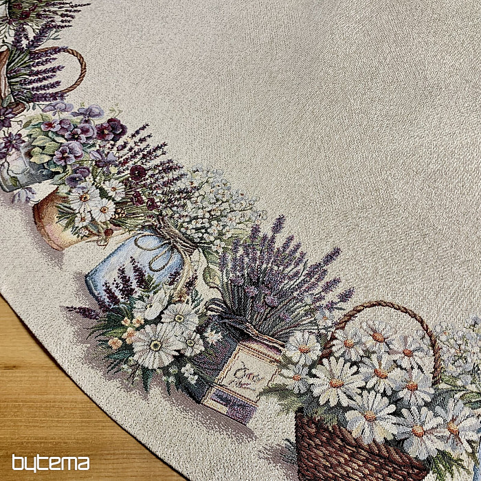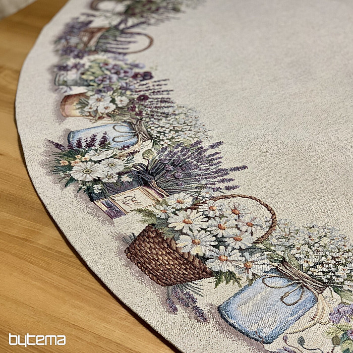 Nádherný okrúhly obrus z pevného gobelínu plná kvetov, ktorá vnesie do vášho domova krásu.