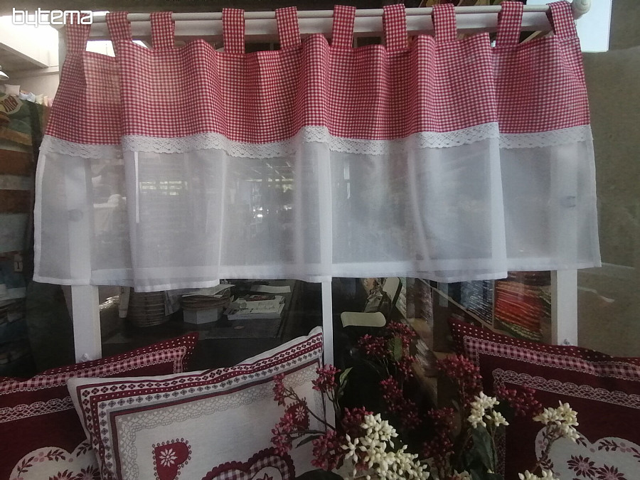 Krátka hotová záclonka, ktorú ponúkame je možné zavesiť na vitrážku, alebo garnižu.