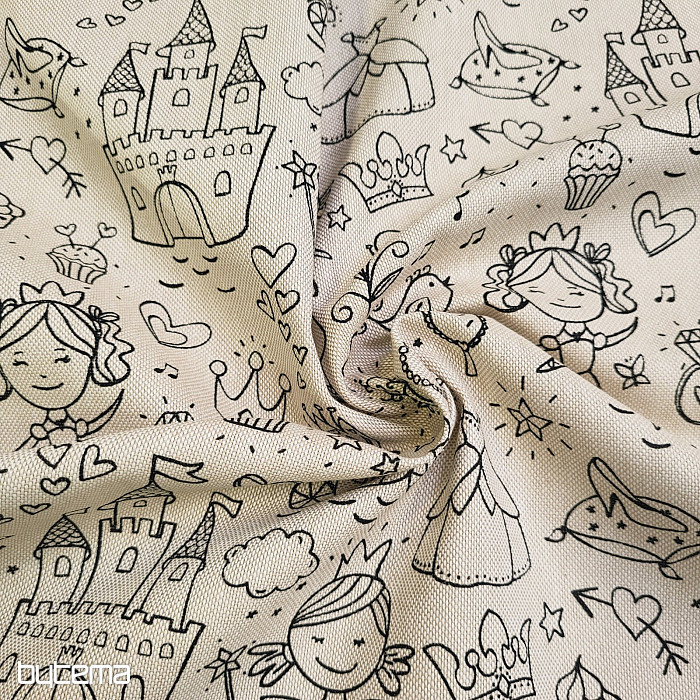 Krásne balvnené látky na kreatívne činnosti vašich najmenších. Obrázky na látke je možné vyfarbovať fixkami na textil. Tento vzor je na svetlo režnom podklade a preto bude vyfarbený obrázok ešte krajší.