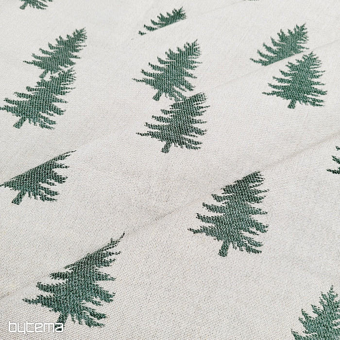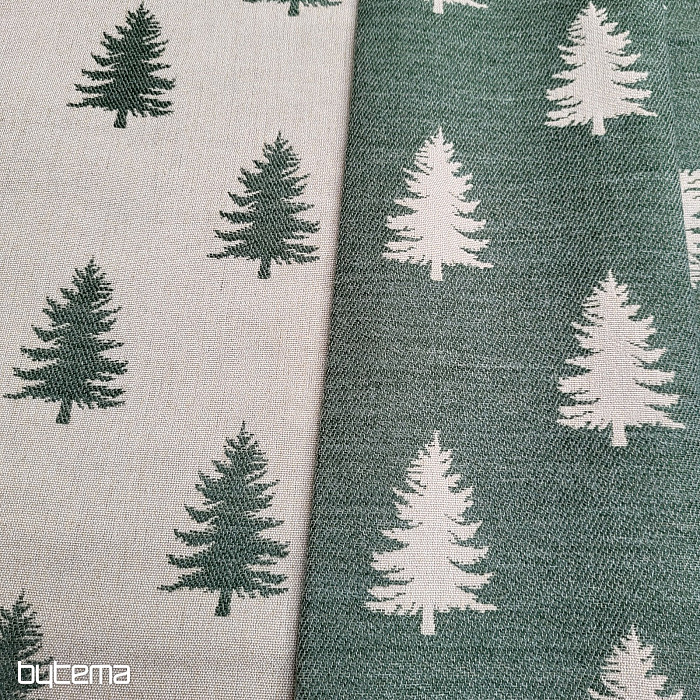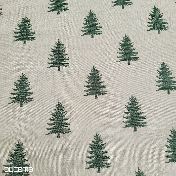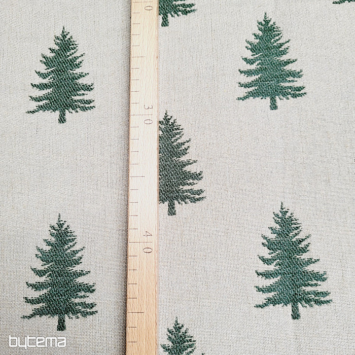 Luxusná prírodná dekoračná látka s motívom smrekov sa pekne hodí do všetkých moderných štýlov. Látka je obojstranná a dvojfarebná. Prírodné zloženie tejto látky vás pohladí aj zahreje po celý rok.