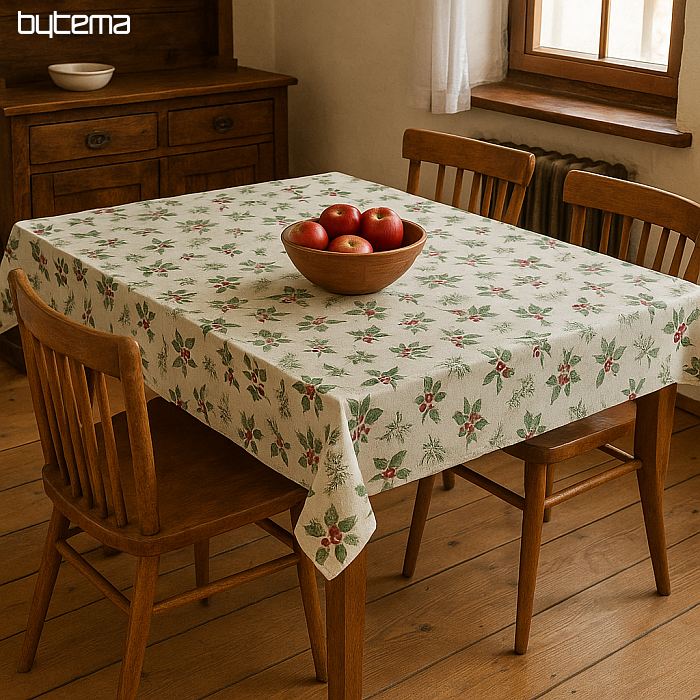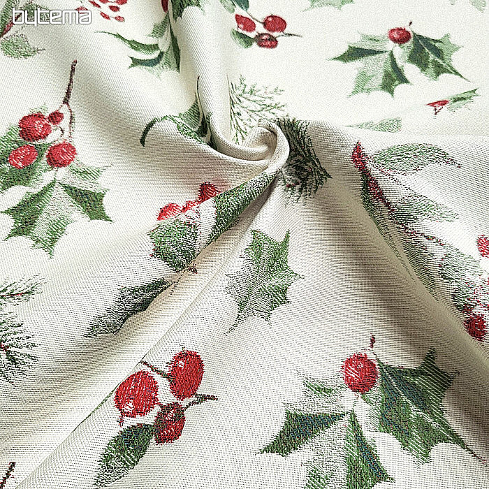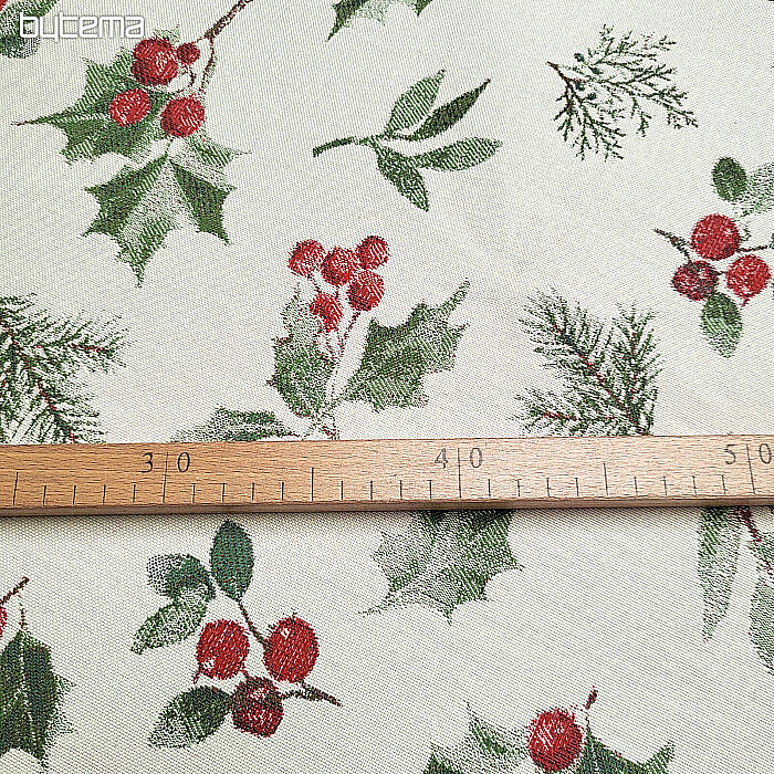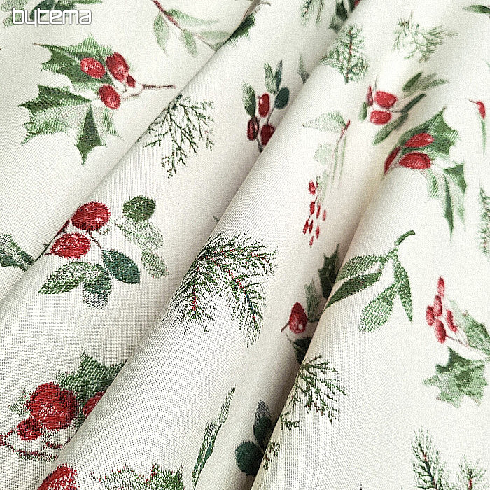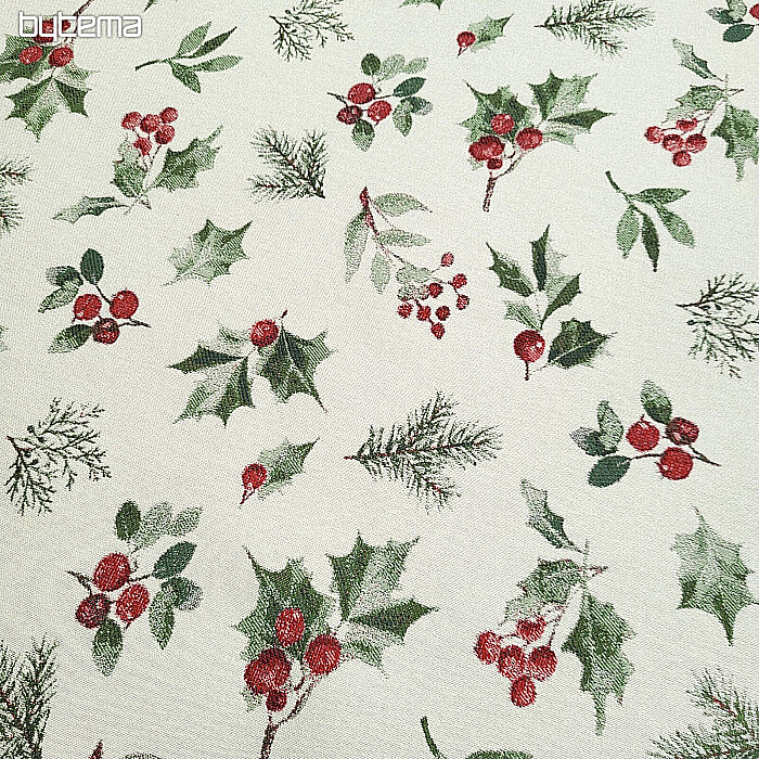 Dekoračná látka s cezmínou ako symbolom Vianoc sa hodí do všetkých interiérov, najmä v chladnejšom období roka.