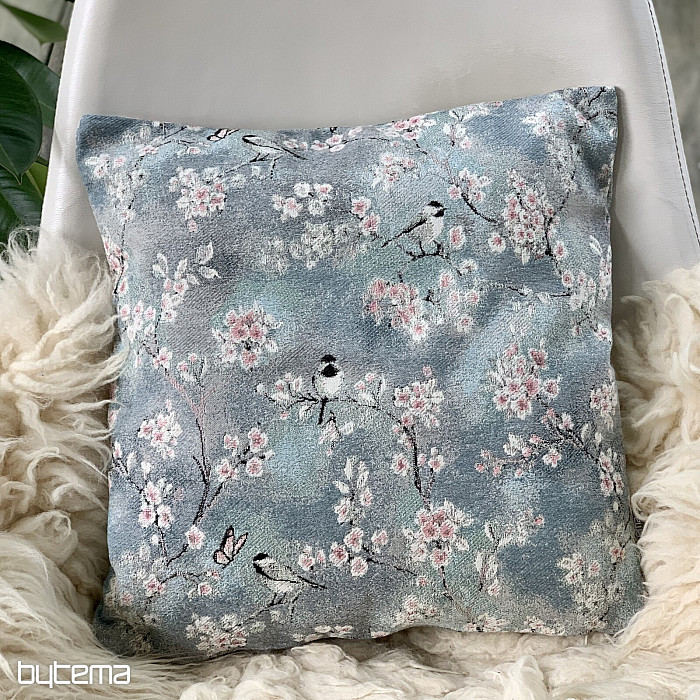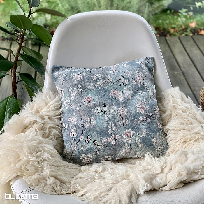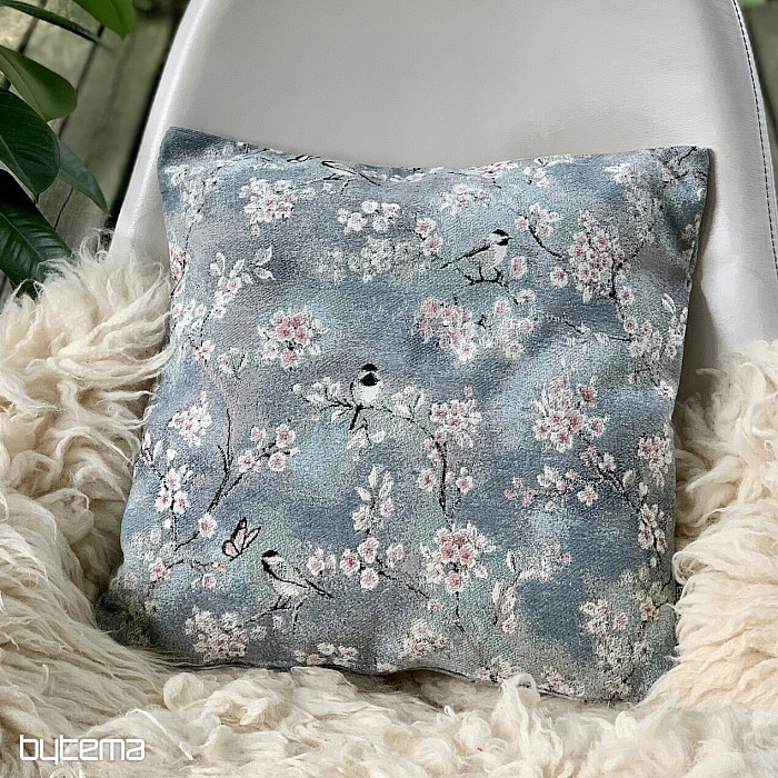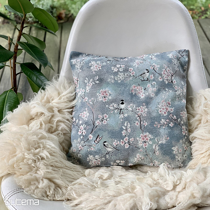 Luxusný kúsok zo tkanej dekoračnej látky s nádychom modrých odtieňov a jemných sýkoriek.