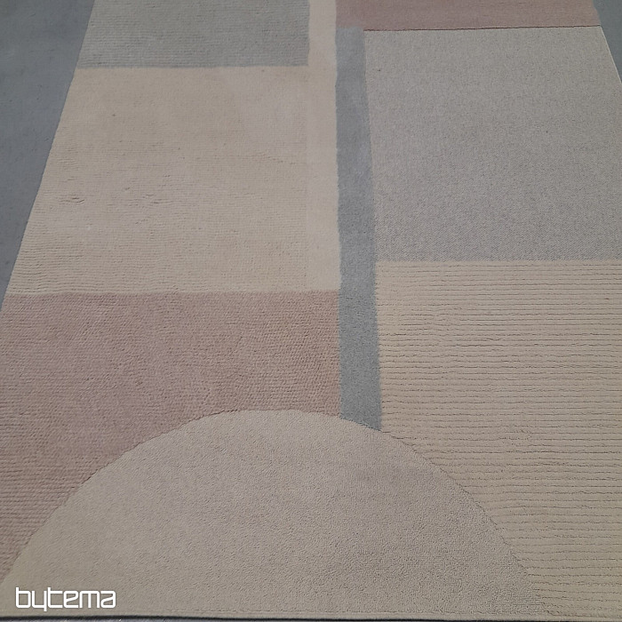 Luxusný belgický koberec v pastelových farbách s 3D geometrickými vzormi. Plastický efekt vytvára rôzne upravený vlas, ktorý je vyrobený z ovčej vlny. Tá zaručuje kobercu vysokú odolnosť a životnosť.