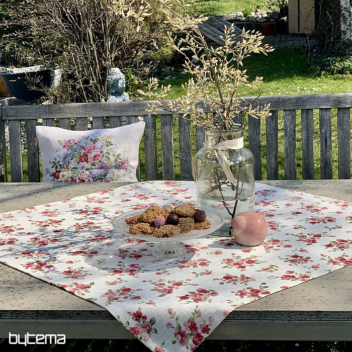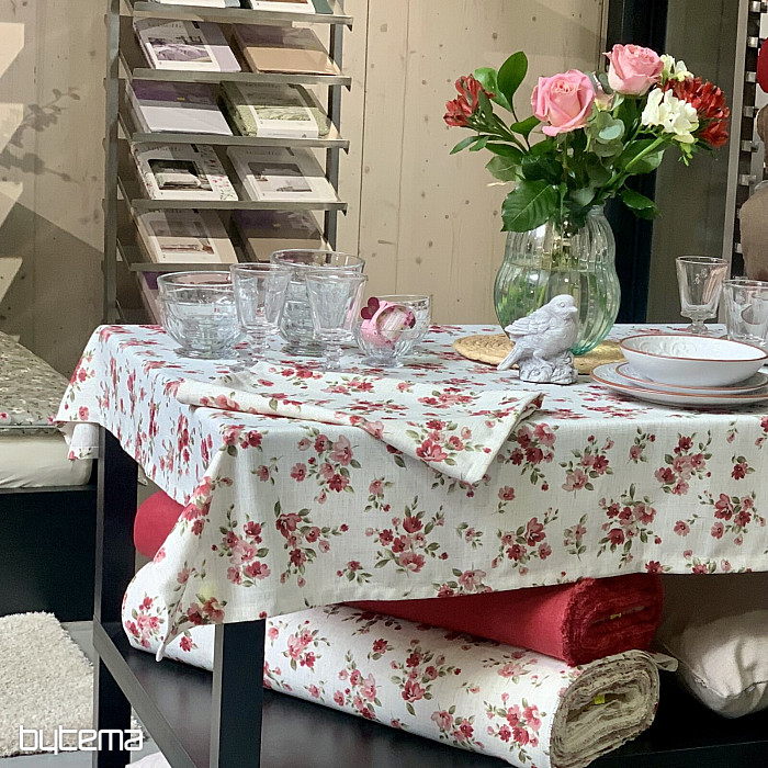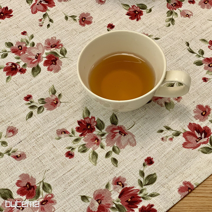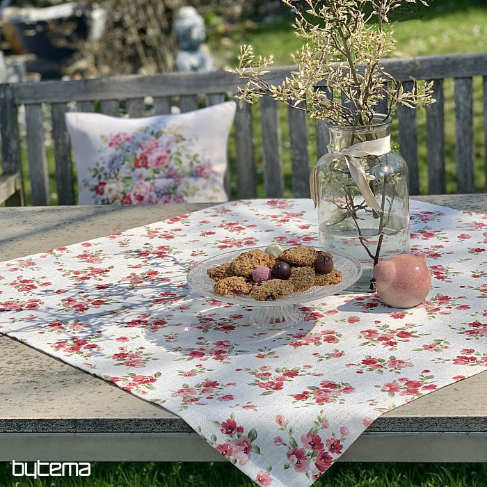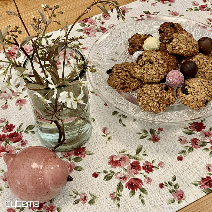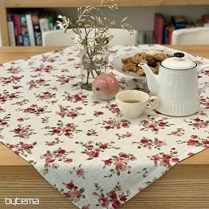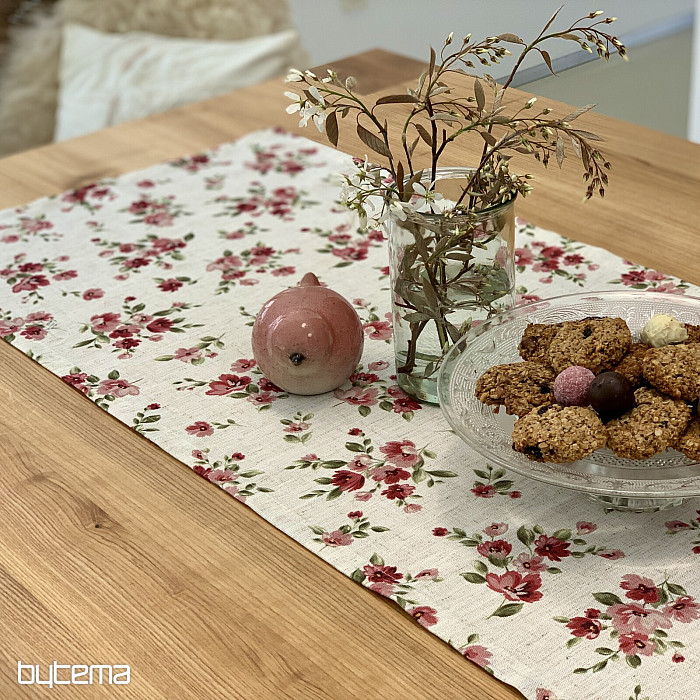 Obrusy aj šály s jarnými kvetmi v tmavo červenej farbe bude ozdobou vášho stola.