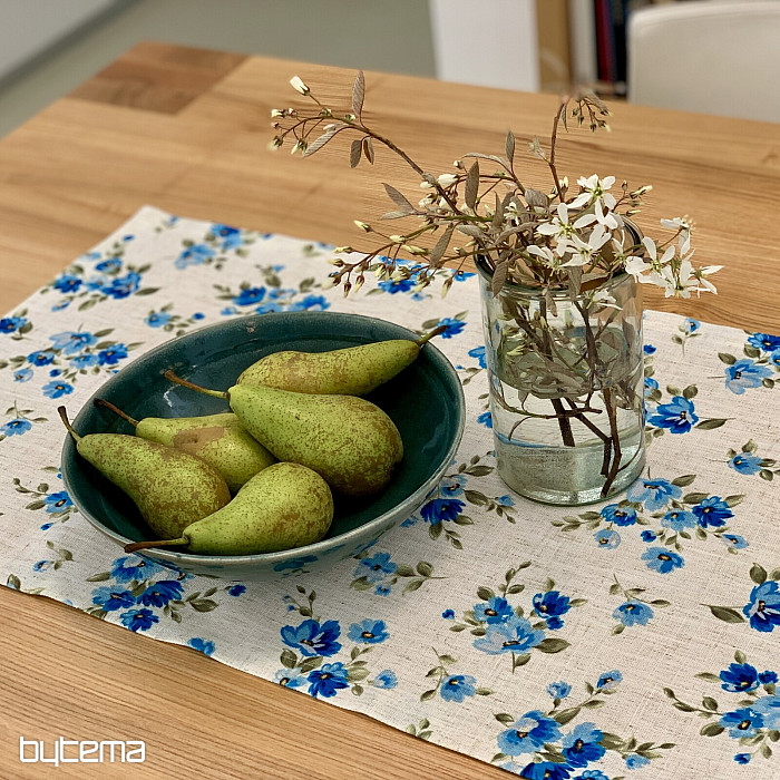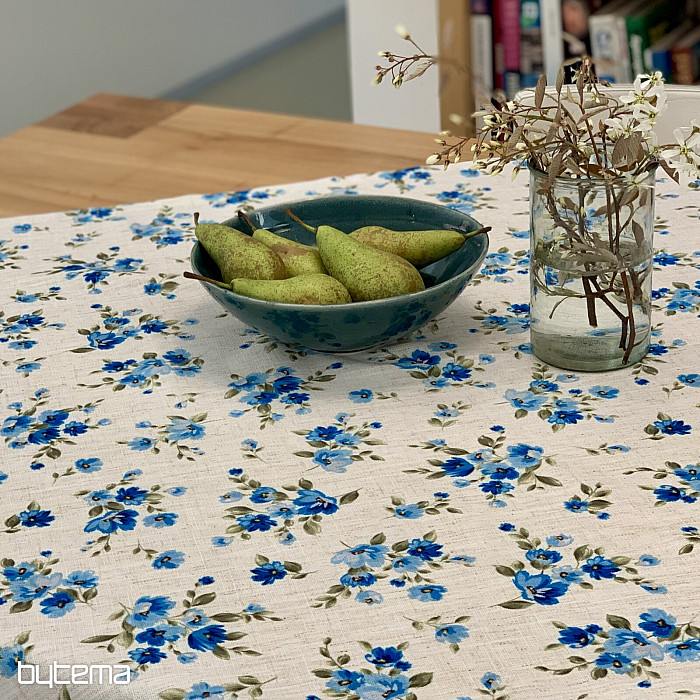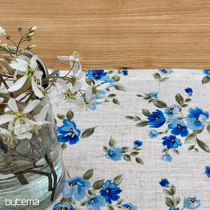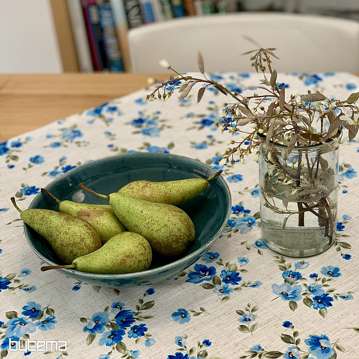 Obrusy a šály s jarnými kvetmi v nezábudkovo modrej farbe bude ozdobou vášho stola.