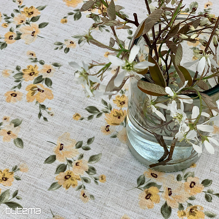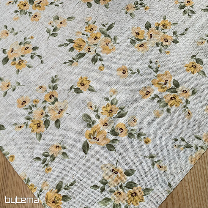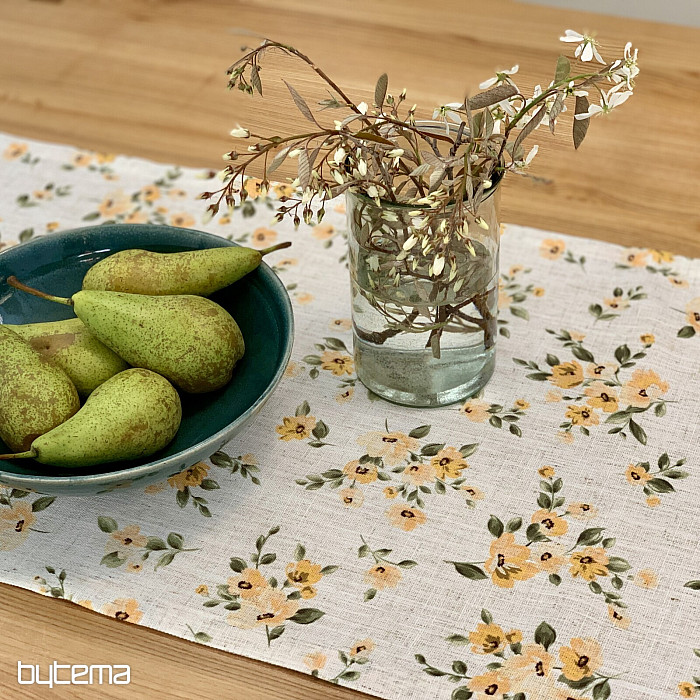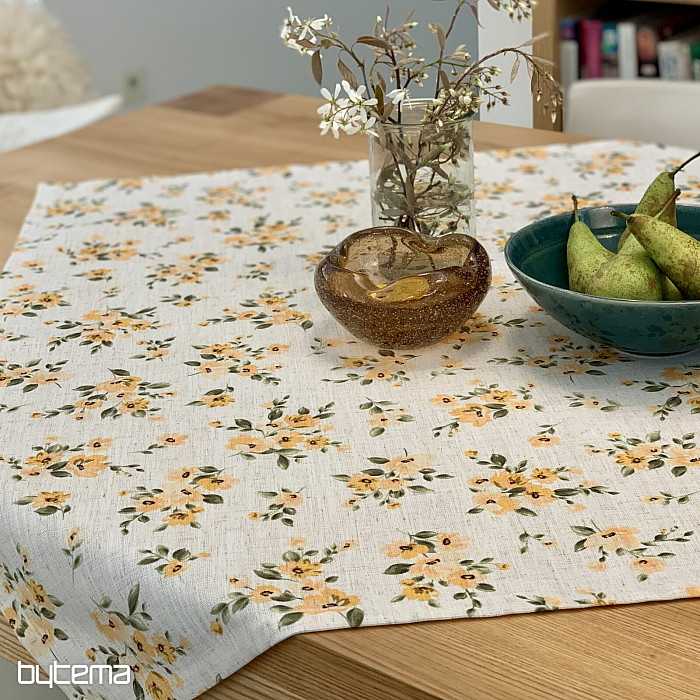Obrus a šál s jarnými kvetmi v sýto žltej farbe bude ozdobou vášho stola.