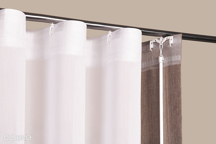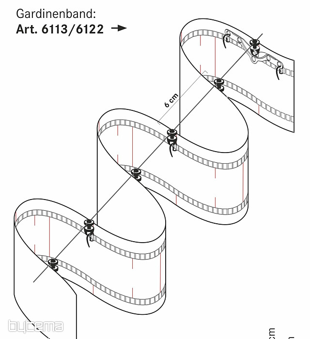 Najpredávanejší typ rašiace pásky na záclony alebo závesy. Pravidelné sklady, veľmi jednoduché, doporučujeme 4x prešiť. Už žiadne sklady do žabiek. Na zadnej strane pásky, sú malé pútka pre háčiky na krúžky, alebo jazdca do koľajníc.