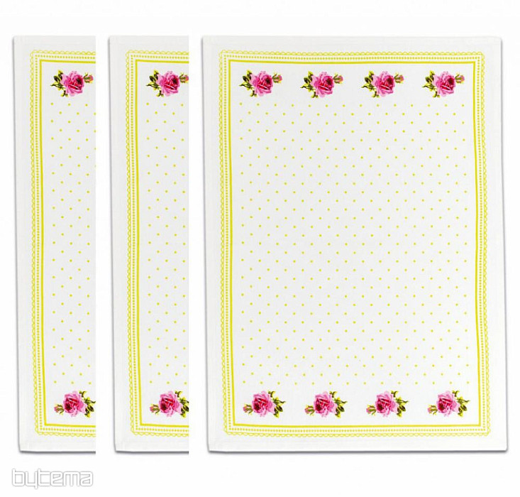 Bavlnené utierky s tlačeným motívom ružičiek a bodiek, vnesie do vašej kuchyne nádych nostalgie babičkinej kuchyne.