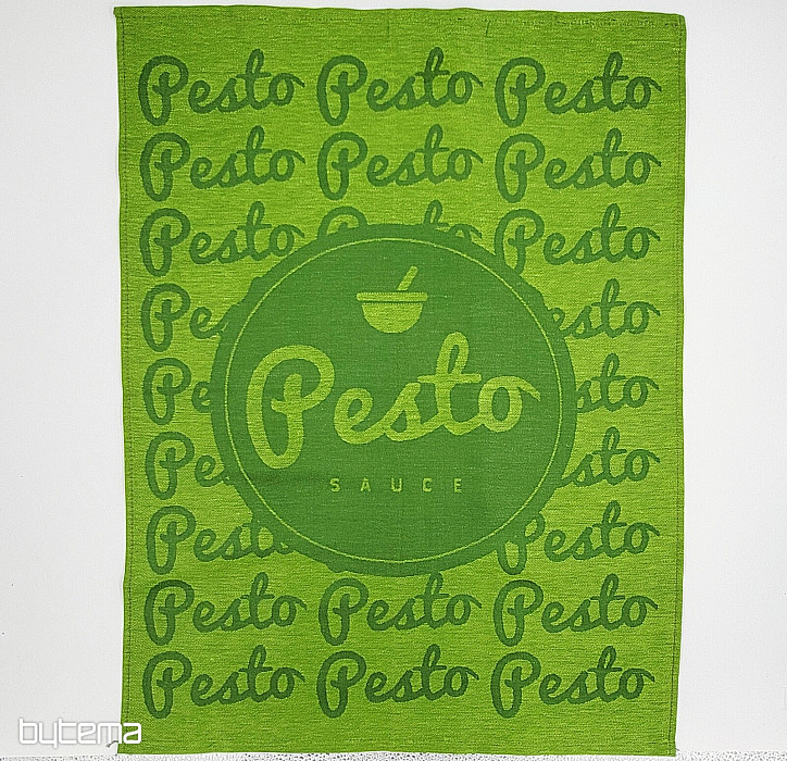 Krásna zelená utierka s nápisom PESTO. Krásny darček pre všetkých kuchárov.