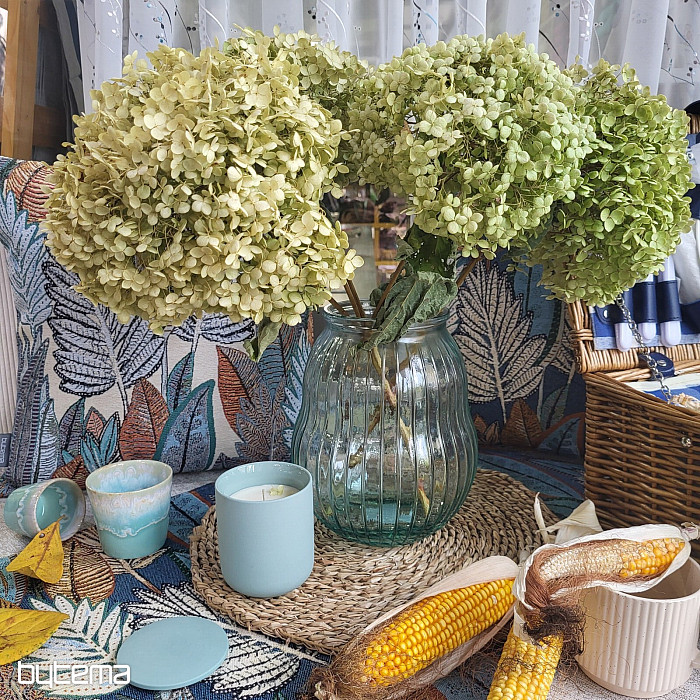 Váza ALBANIA z číreho skla so sezónnou kyticou bude jedinečnou dekoráciou na vašom jedálenskom stole alebo v pergole.