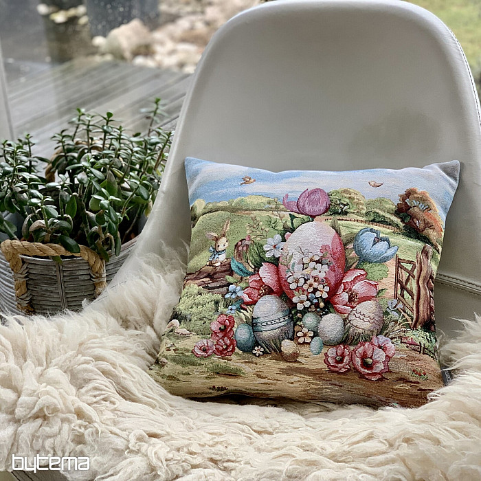 Gobelínový obliečka na vankúš s veľkonočným motívom bude krásnym doplnkom u vás doma v tento čas.