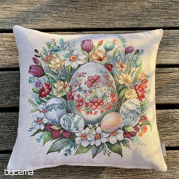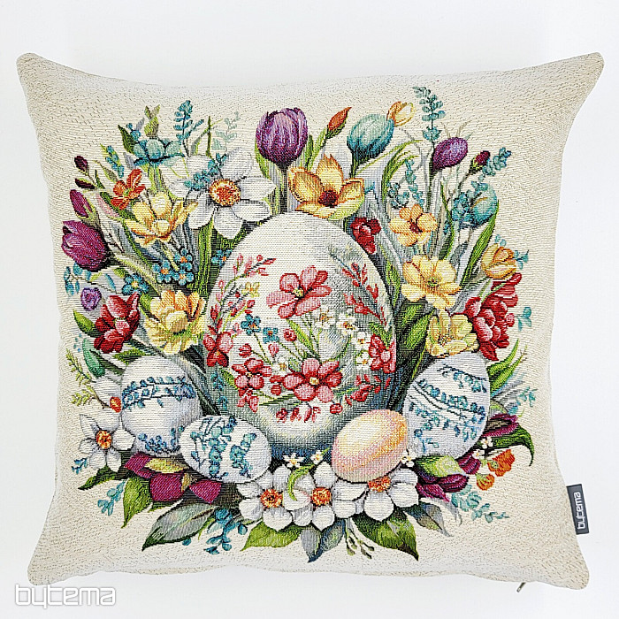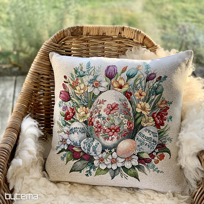Gobelínový povlak s červenými kraslicami je krásnou dekoráciou pre Veľkonočné sviatky.
