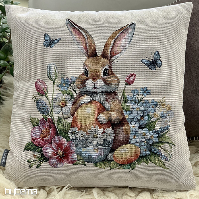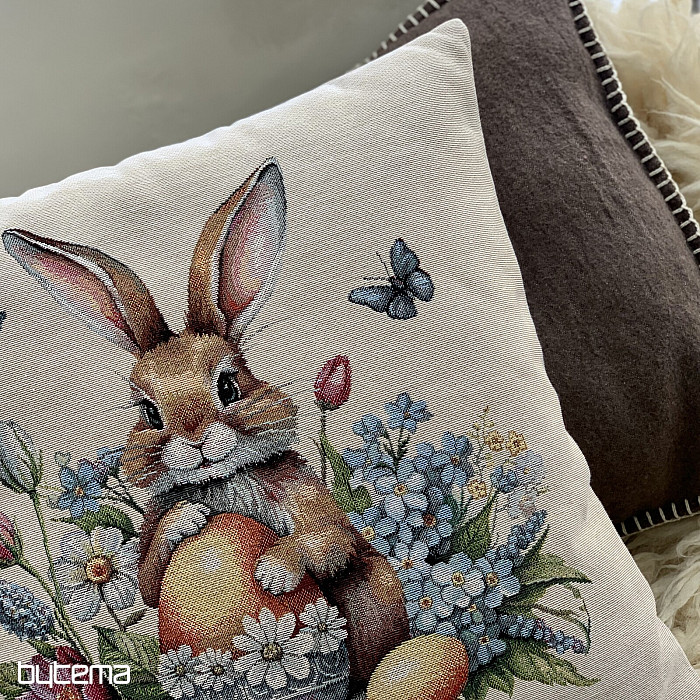 Gobelínový povlak s roztomilým zajačikom a plný jarných kvetov zaručene prenesie Veľkonočnú atmosféru k vám.