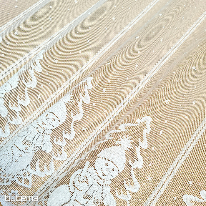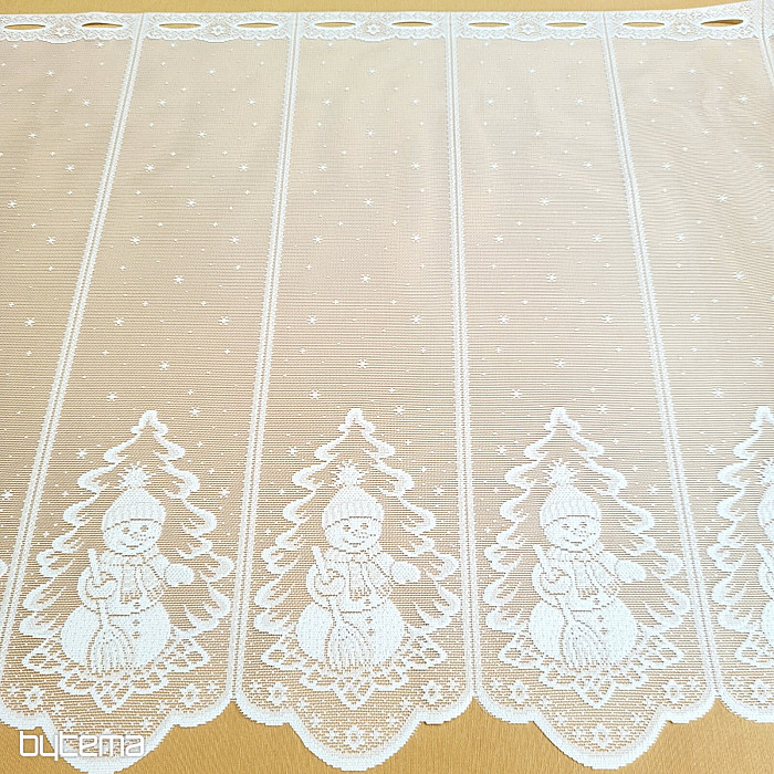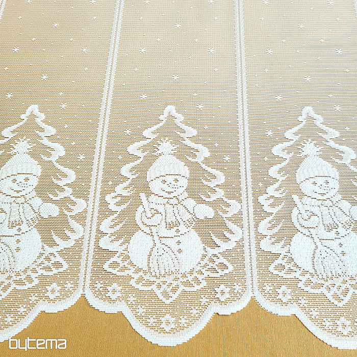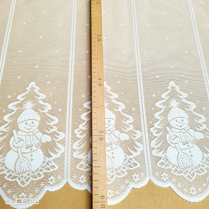 Nádherná a jedinečná žakárová vianočná vitrážová záclona so snehuliakmi.