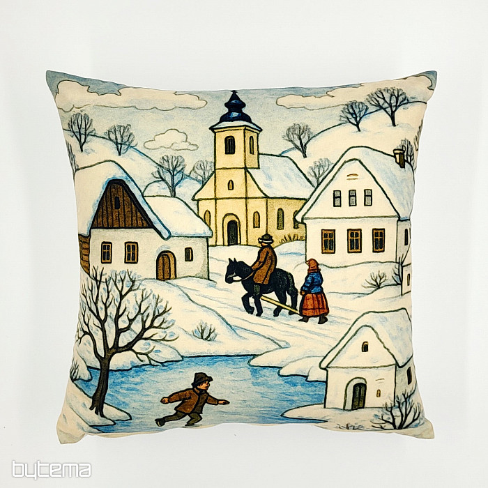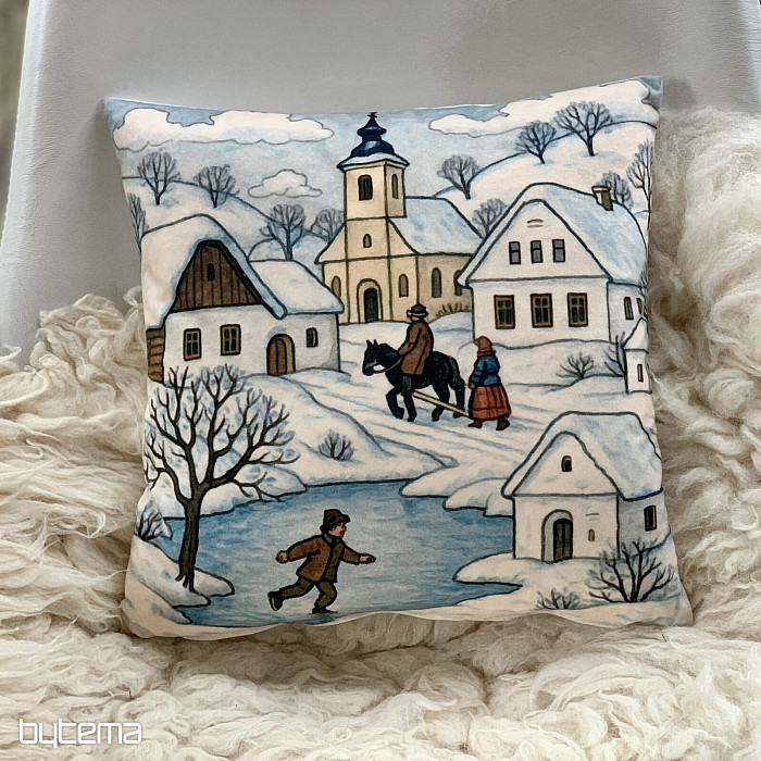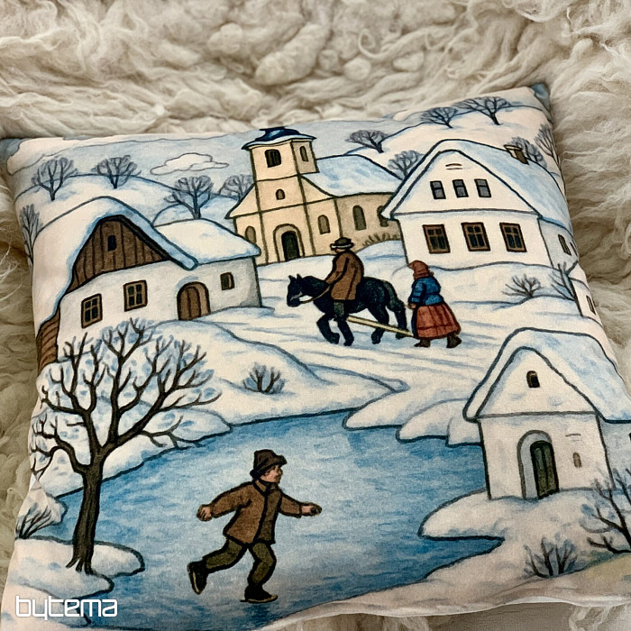 Vianočná obliečka na vankúš s nádychom Ladovského motívu vám bude robiť radosť po celý zimný čas.