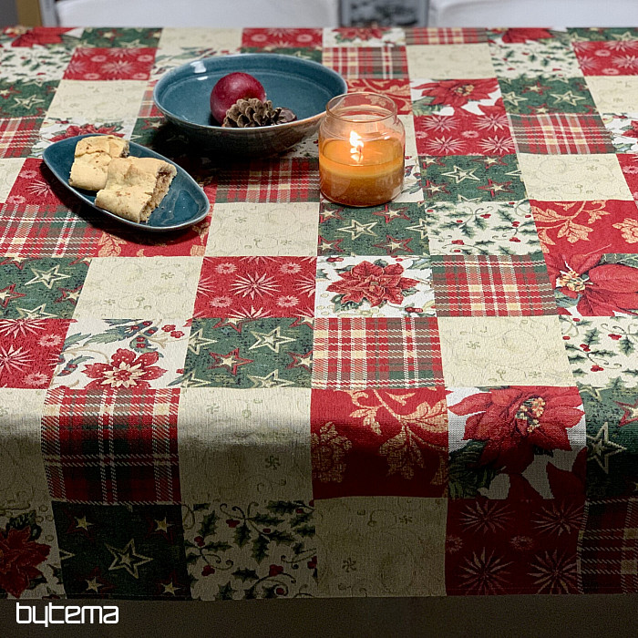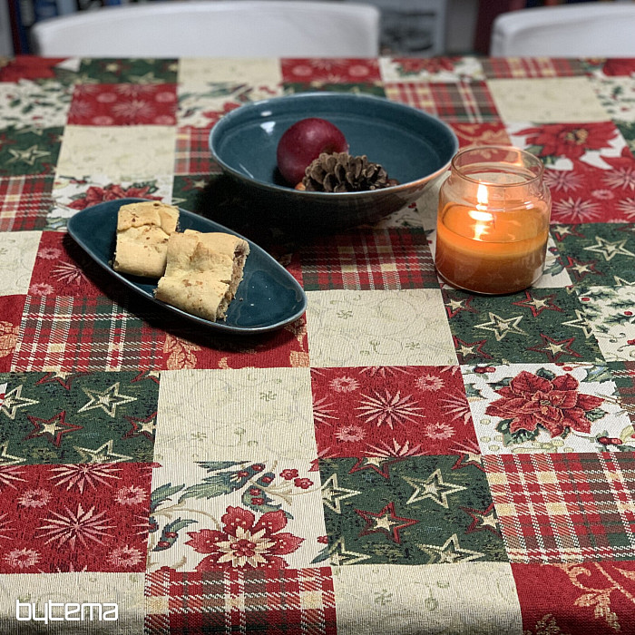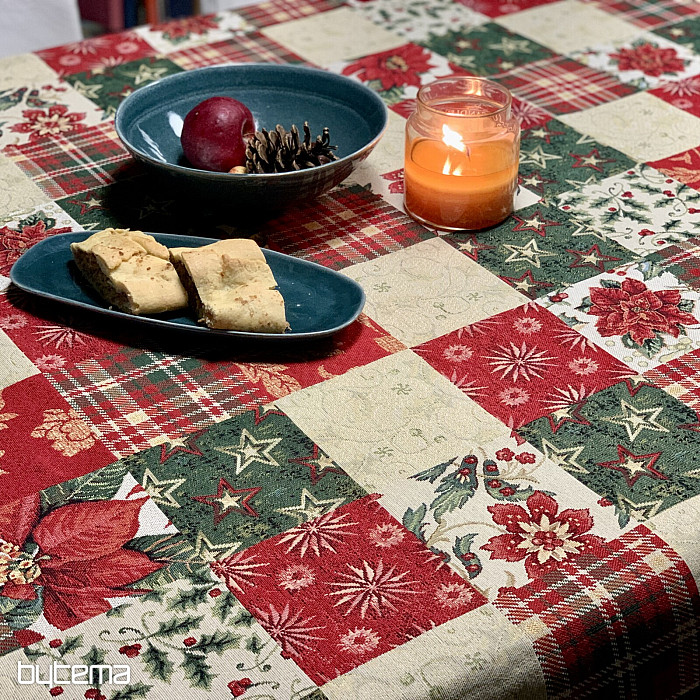 Gobelínové obrusy s vianočným motívom v patchworkovom dizajne rozžiaria vianočnú atmosféru vo vašej kuchyni, v jedálni alebo obývačke. Z tejto láky môžete mať aj obliečky na vankúše do kombinácie.
