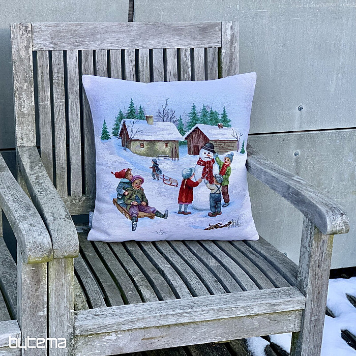 Zimné popoludnie je pevný gobelínový povlak znázorňujúci detskú zimnú zábavu. Jedičná nostalgia.