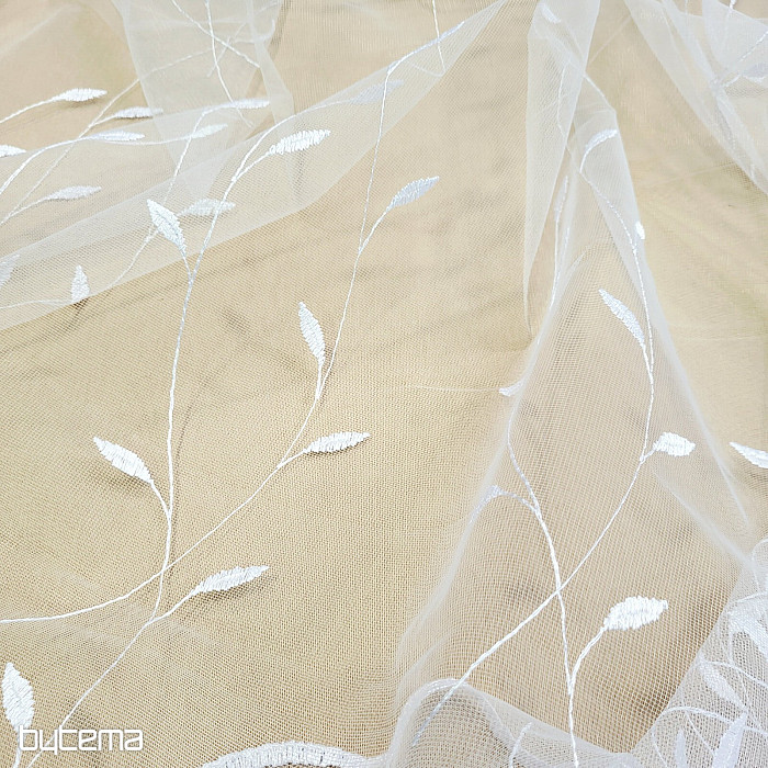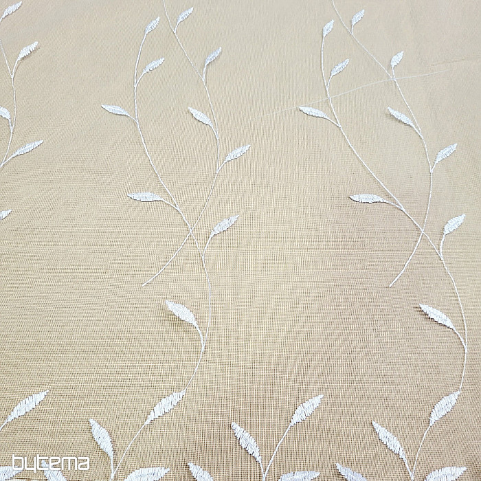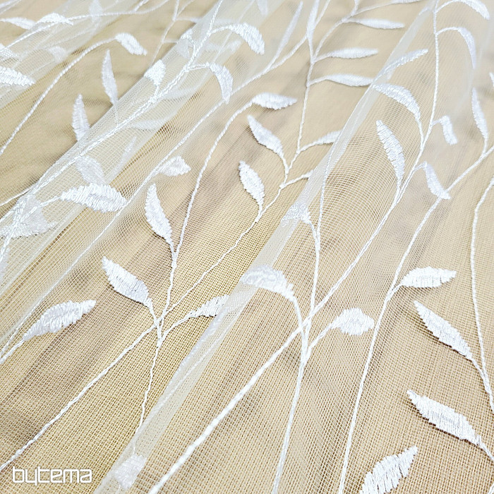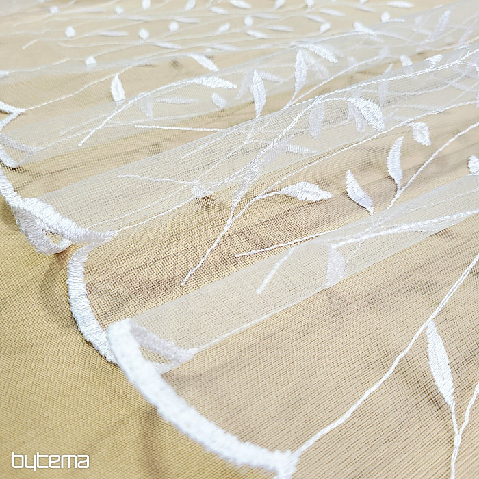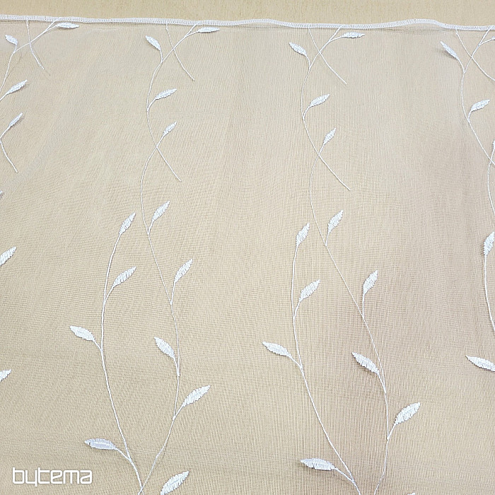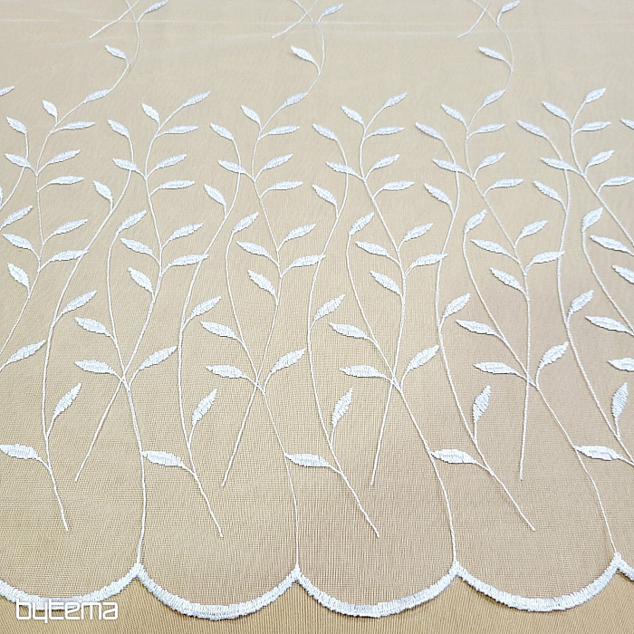 Záclona s vyšívanou bordúrou, ktorá je celoplošná, nádherné jemné, decentné lístky.