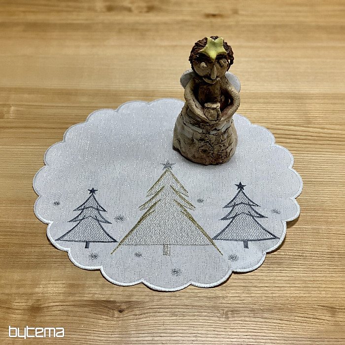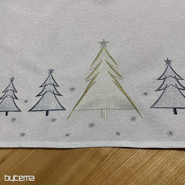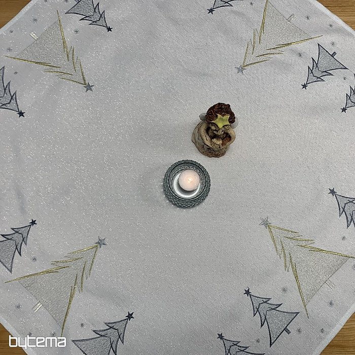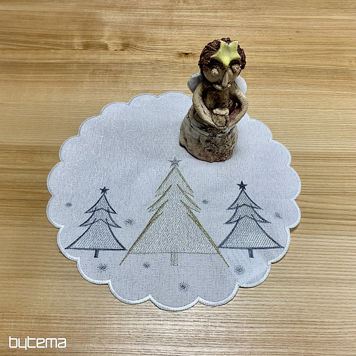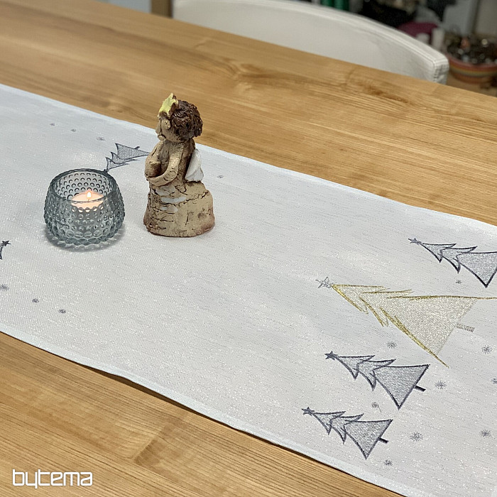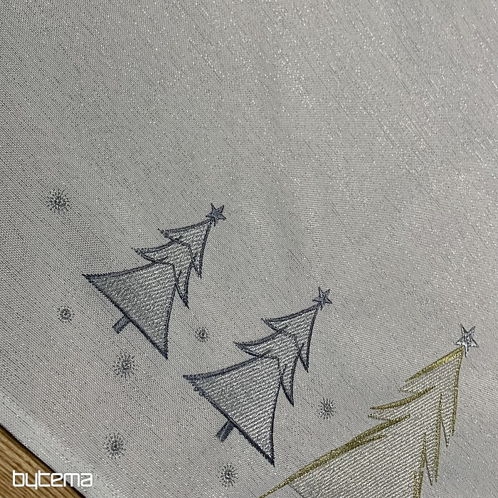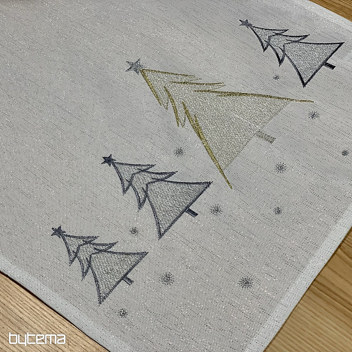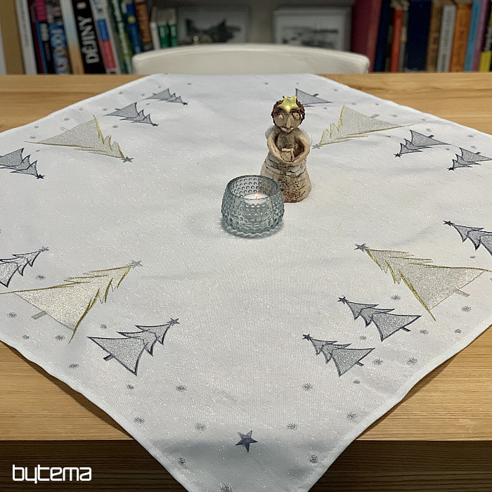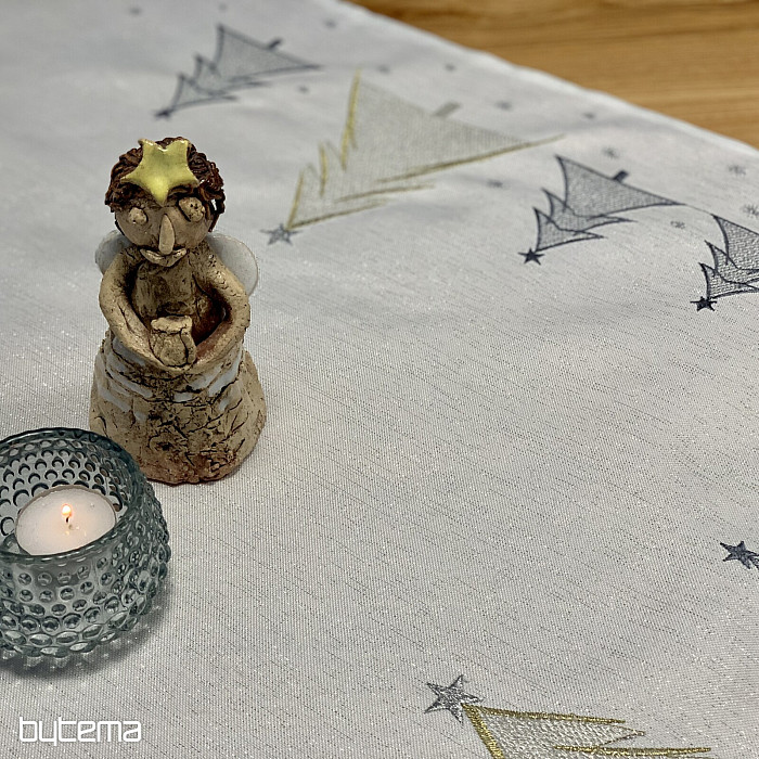 Vkusne a jemne vyšívaný vianočný obrus a šál so stromčekmi v dvoch farbách bude očarujúcim doplnkom u vás doma.