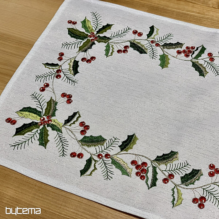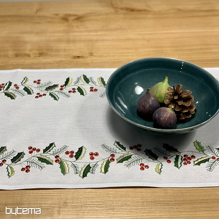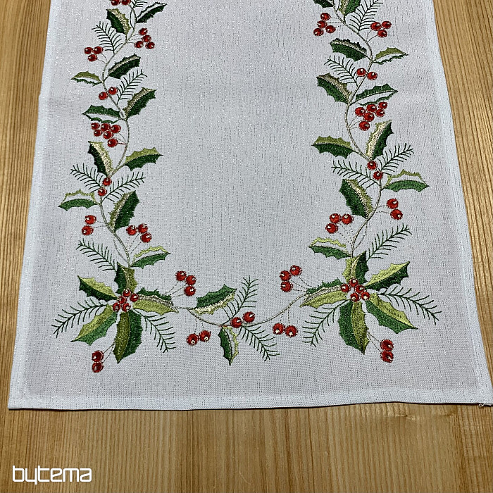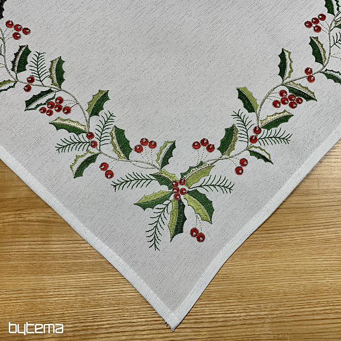Vyšívaný obrus s cezmínou krásne rozjasní a zároveň zútulní váš byt po celý Vianočný čas.
