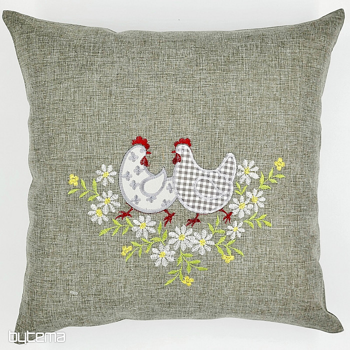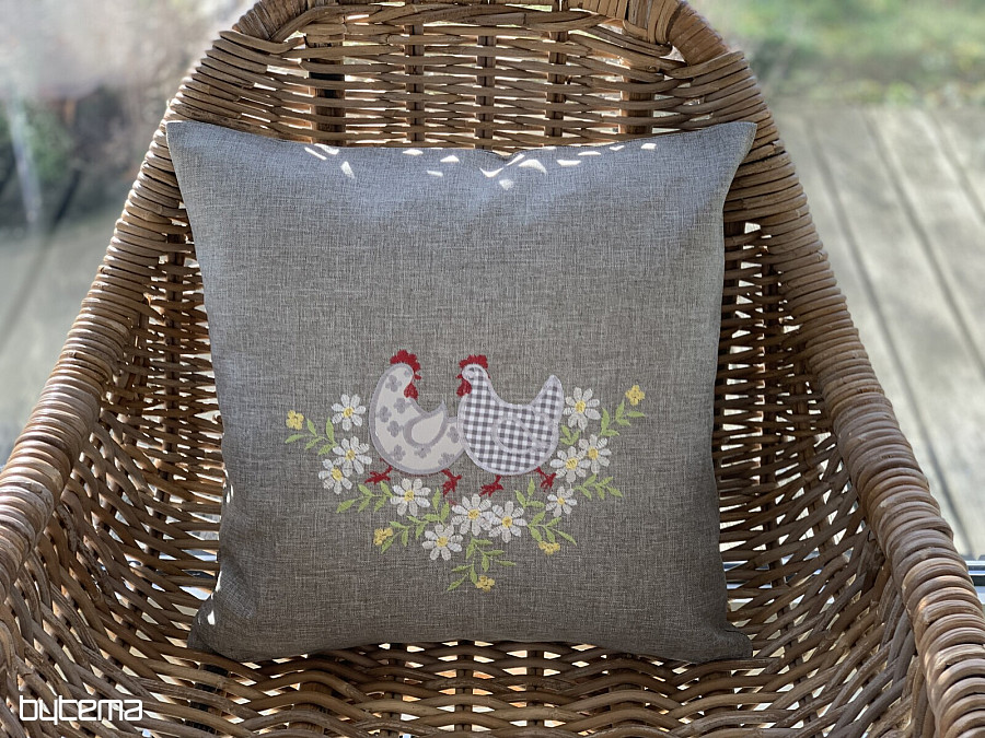 Vyšívaná obliečka na vankúš s veľkonočným motívom a jarnými kvetmi.